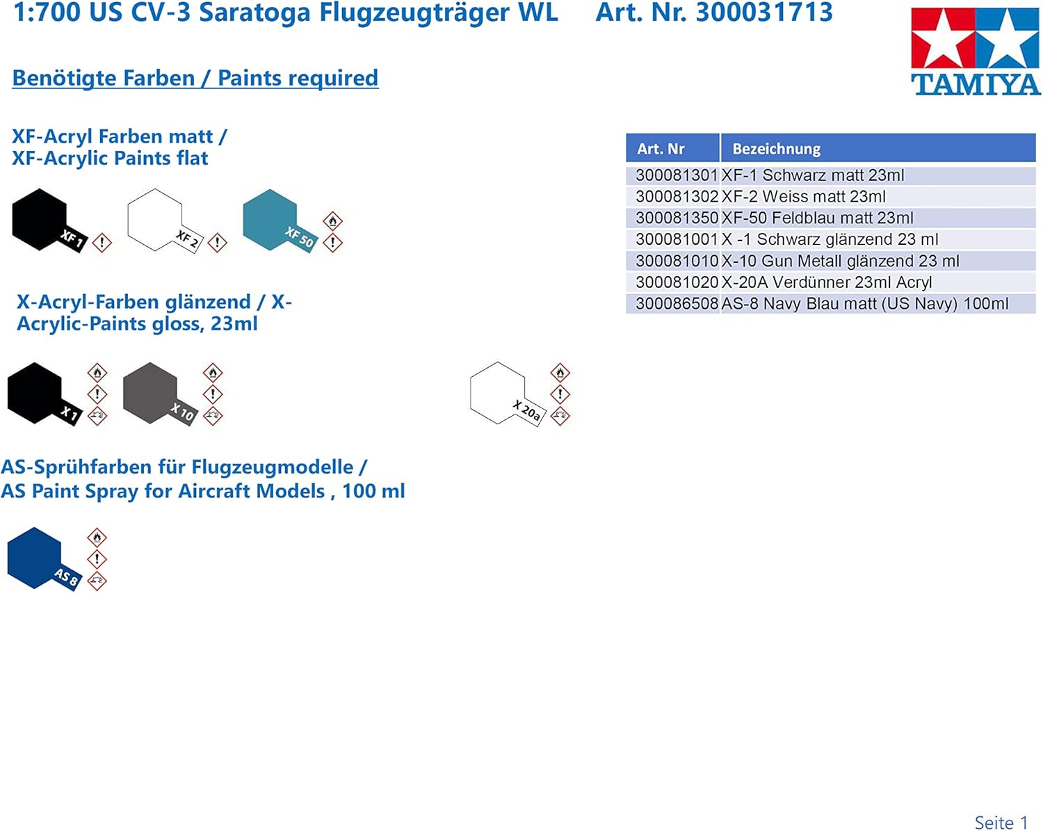Tamiya 31713 1/700 US Aircraft Carrier Saratoga Plastic Model Kit