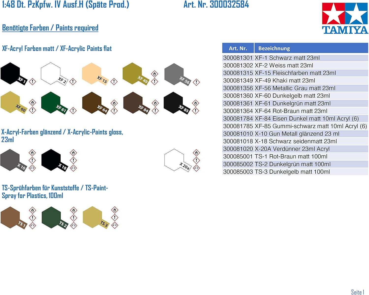 Tamiya 32584 1/48 German Panzer IV AUSF.H Plastic Model Kit