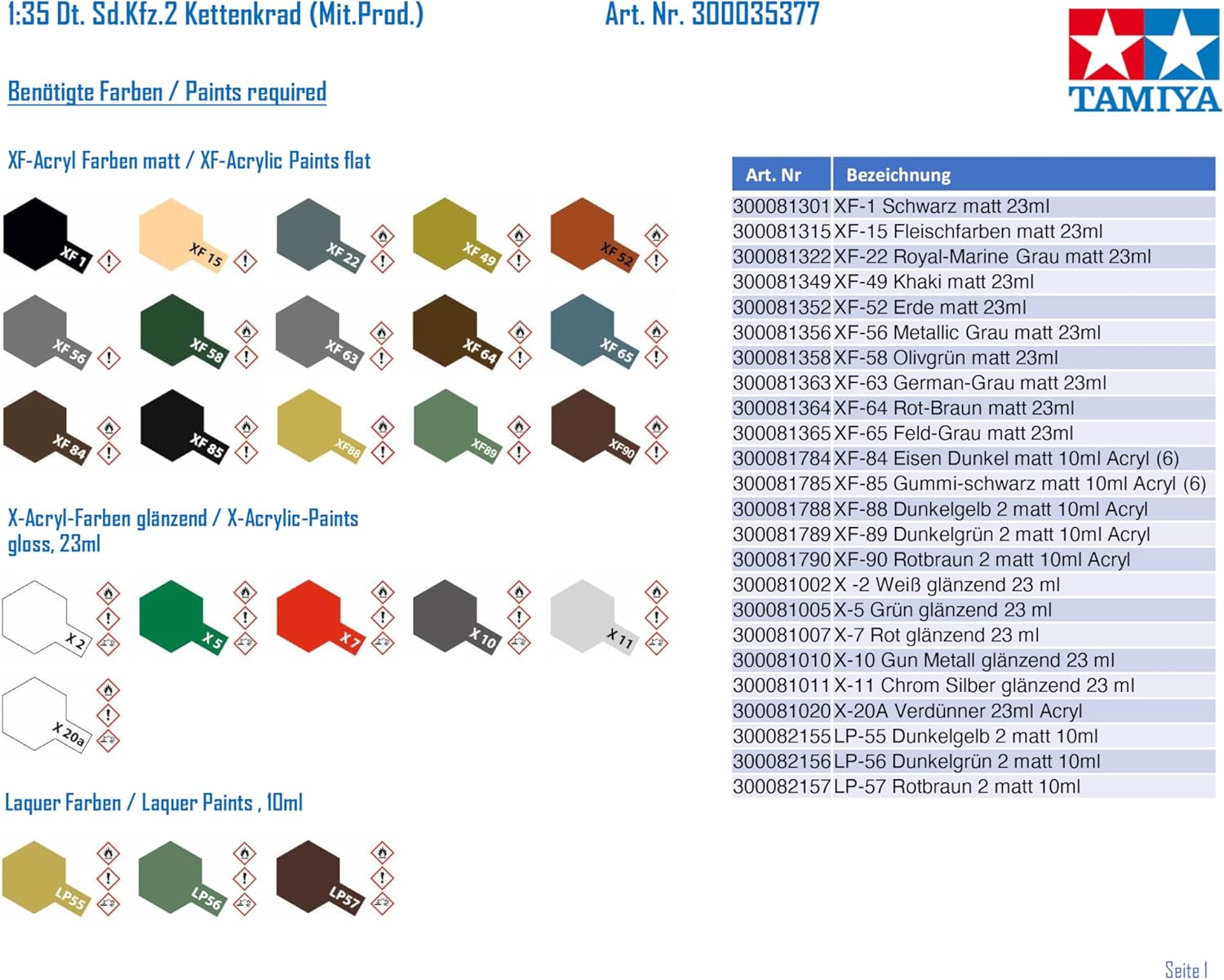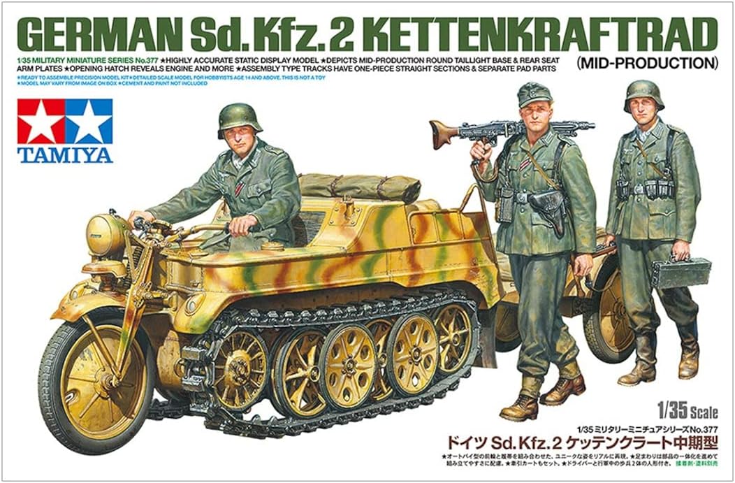 TAMIYA 35377-000 Military 35377 1:35 German Sd.Kfz.2 Kettenkrad (with Product) Faithful Replica, Model Building, Plastic Kit, Crafts, Hobby, Model Kit, Assembly, Unpainted