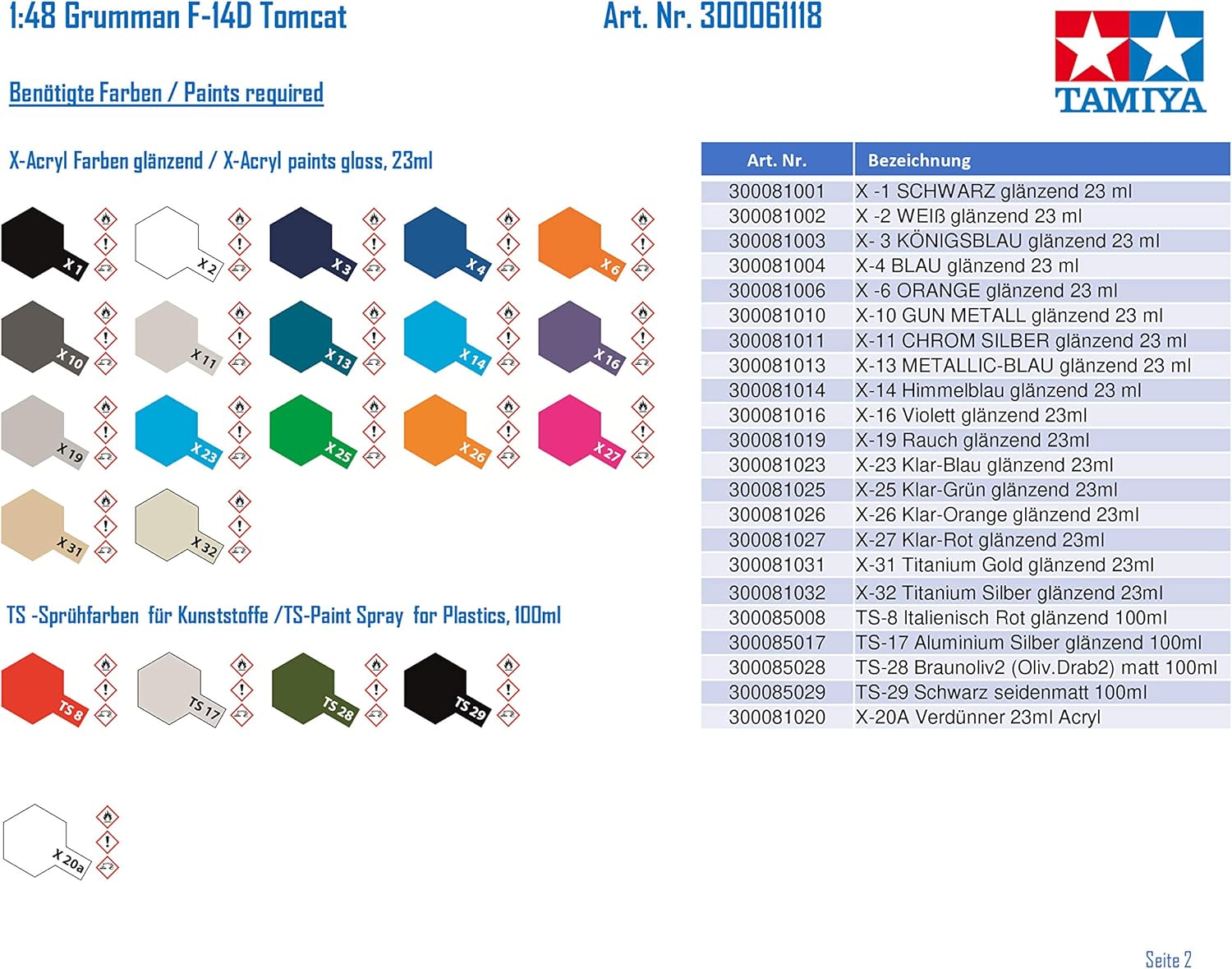 Tamiya 61118 1/48 Grumman F-14D Tomcat Plastic Model Airplane Kit