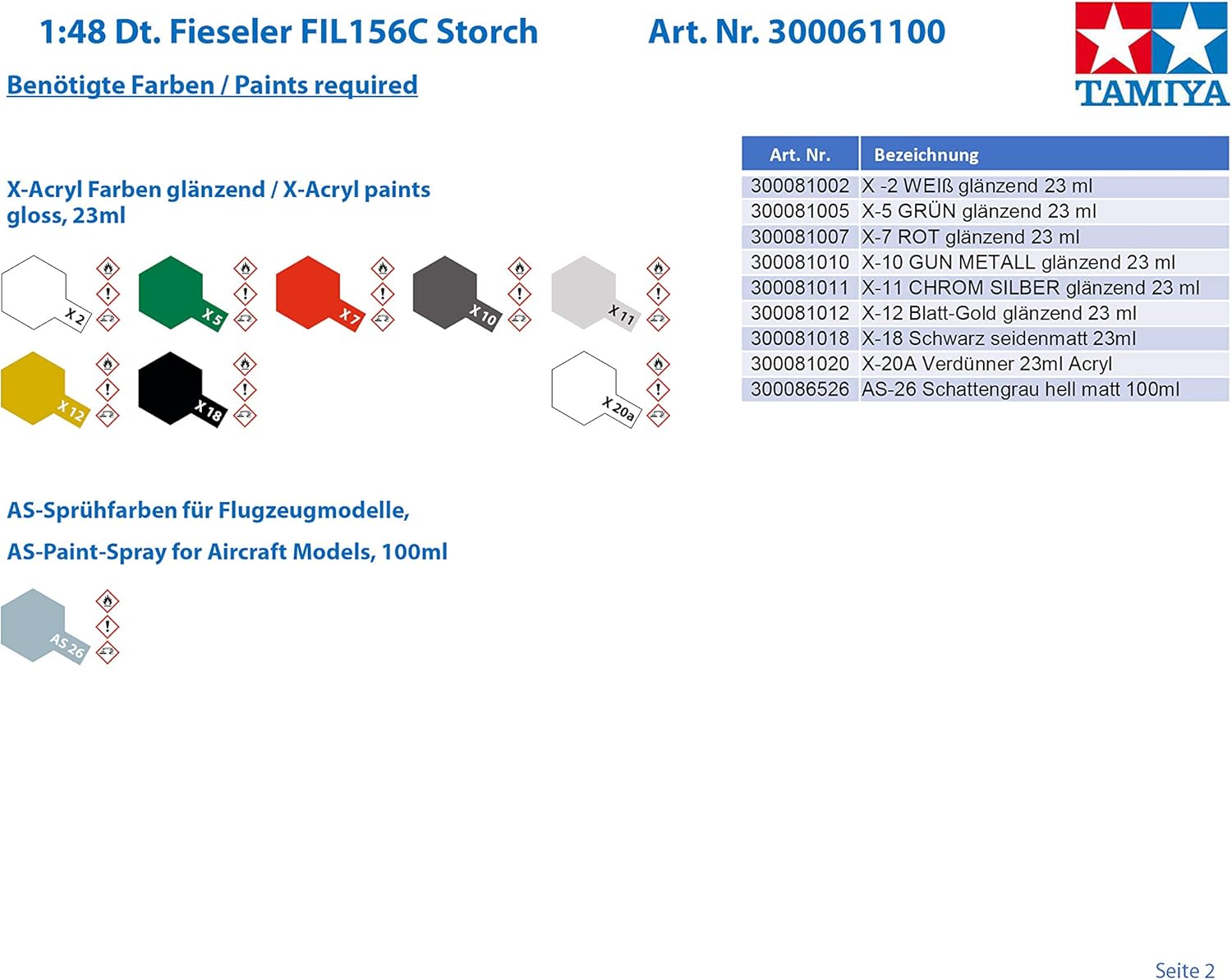 Tamiya Models Fieseler Fi 156C Storch Model Kit