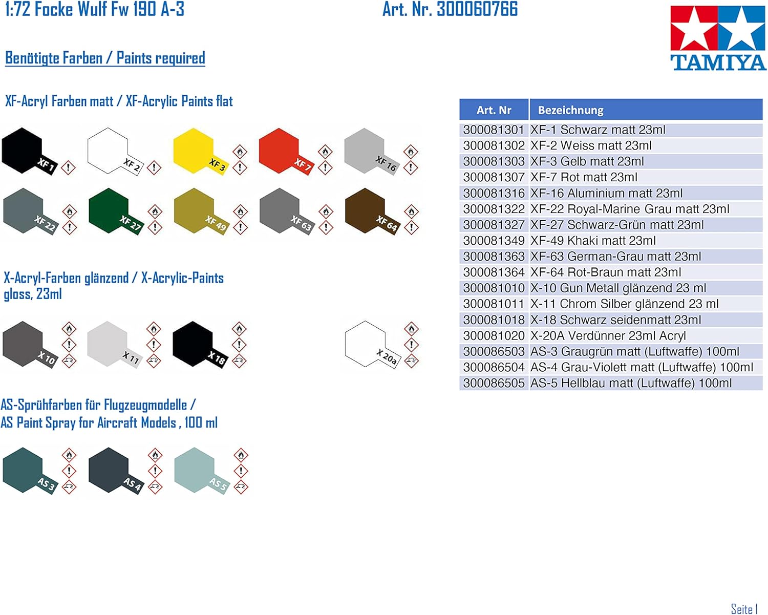 Tamiya Models Focke Wolf 190 A-3 Model Kit