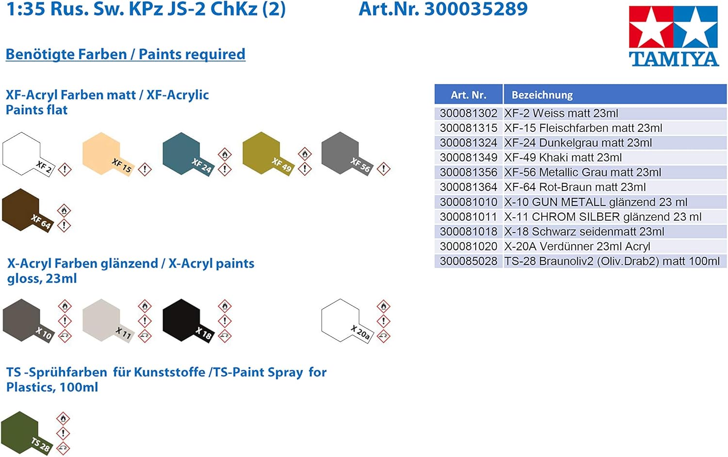 Tamiya Models Russian Heavy Tank JS-2 Model Kit