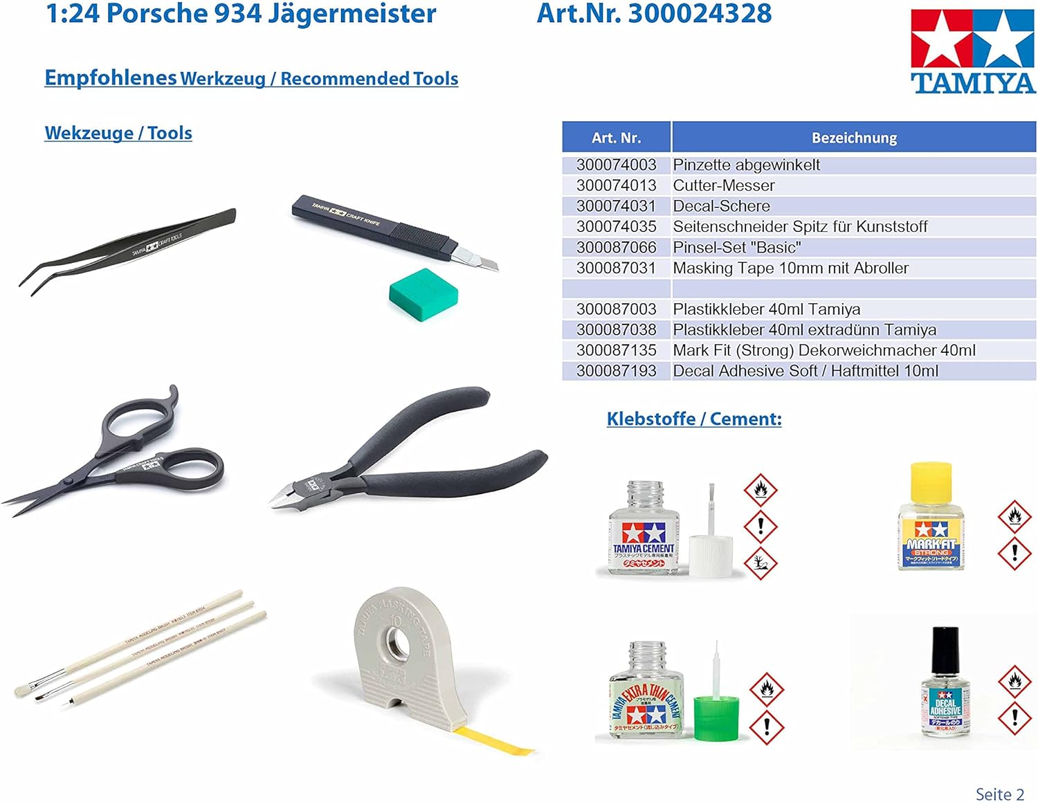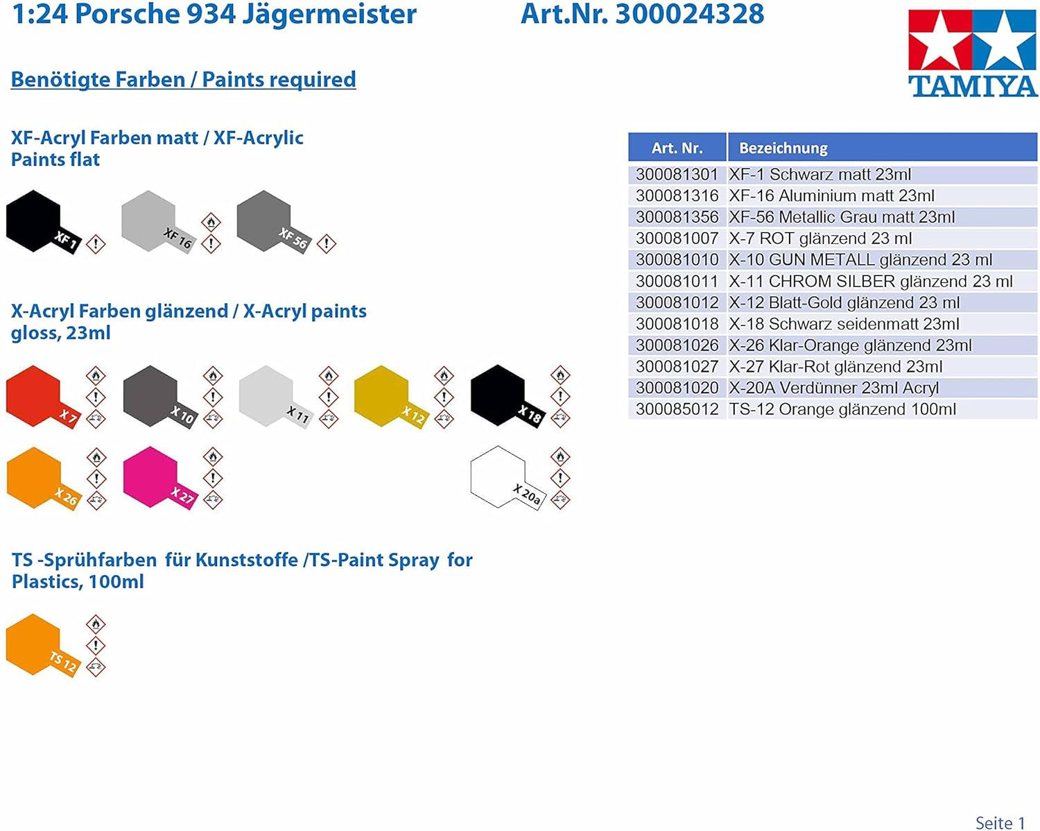 Tamiya Porsche Vehicle 300024328 934 Jaegermeister Car Model Kit 1:24, Orange
