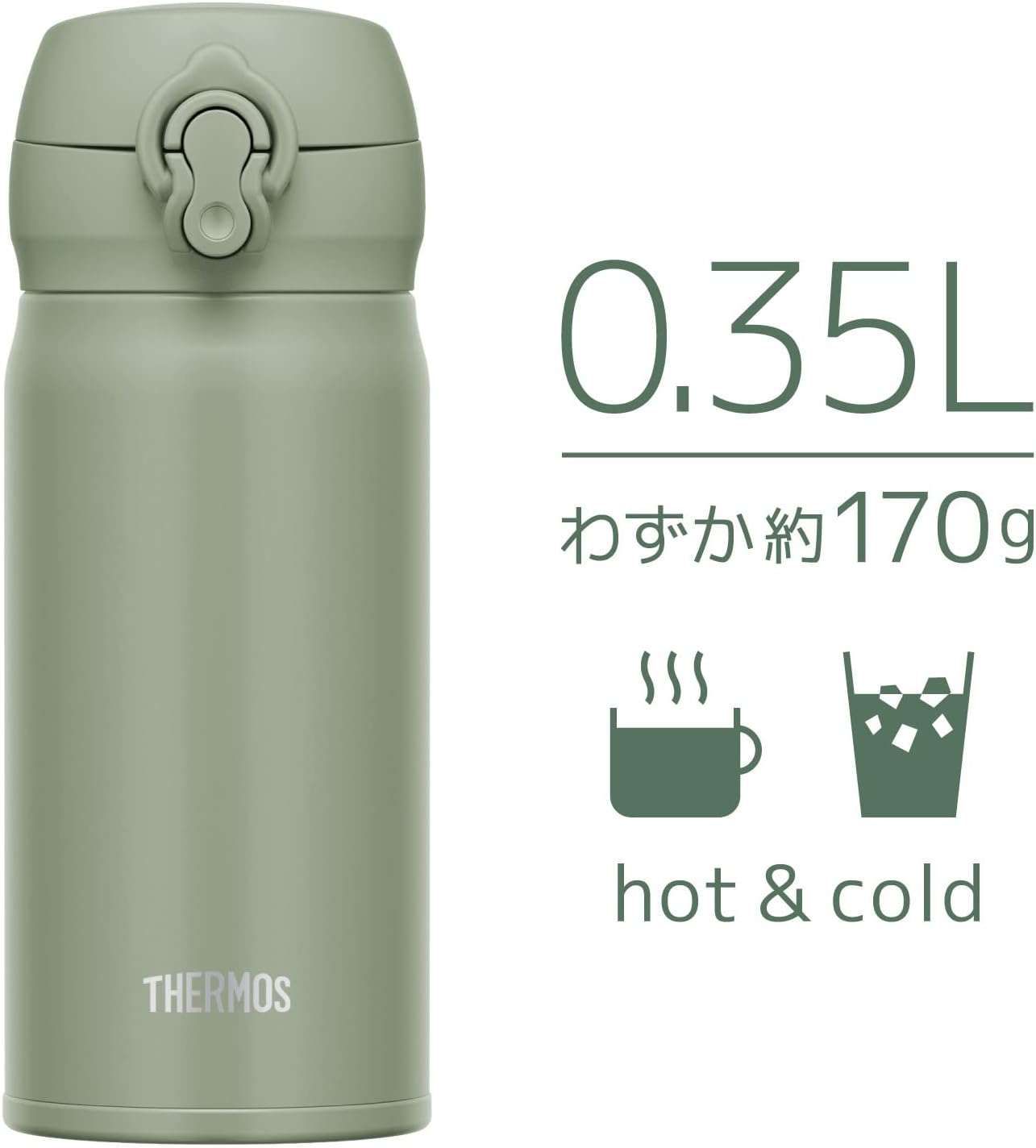 Thermos JNL-356 SMKKI Vacuum Insulated Portable Mug, 11.8 fl oz (350 ml), Smoked Khaki, Easy to Clean, Lightweight Type, One-Touch Opening, Stainless Steel Bottle, Hot and Cold