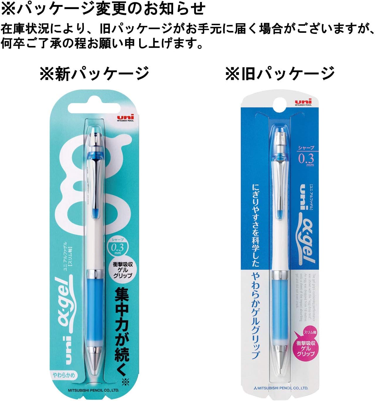 Uni Mechanical Pencil, Slim Model with Alpha Gel Grip, 0.3mm, White & Blue (M3807GG1PW.33)