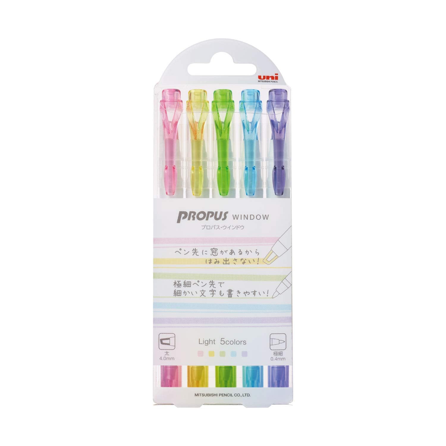 - In Uni propus window series, new twin markers an ultra-fine pen core suitable for writing letters have appeared•?� "propus window" Series has been developed as a twin Type for both bold and thin characters. Recently, there is an increasing demand for writing on the fine print side. Therefore, a color pen that uses an extra-fine pen core and can be used not only for underlining but also for writing letters has appeared. in recent years, The colors used in notebooks tend not to be too conspicuous, and light colors with weak fluorescent colors tend to be preferred. Three types of ink were prepared for each of five colors. Good and clear Basic color, soft and friendly Light color, and calm and gentle smoke color. You can use them according to color preference, presence or absence of fluorescence, and usage. ] a pen core with a window, which is a feature of the ‰ÛÏpropus window‰ series, is used to display characters while drawing the line, so that it can be clearly marked without protruding from where you want to draw the line.