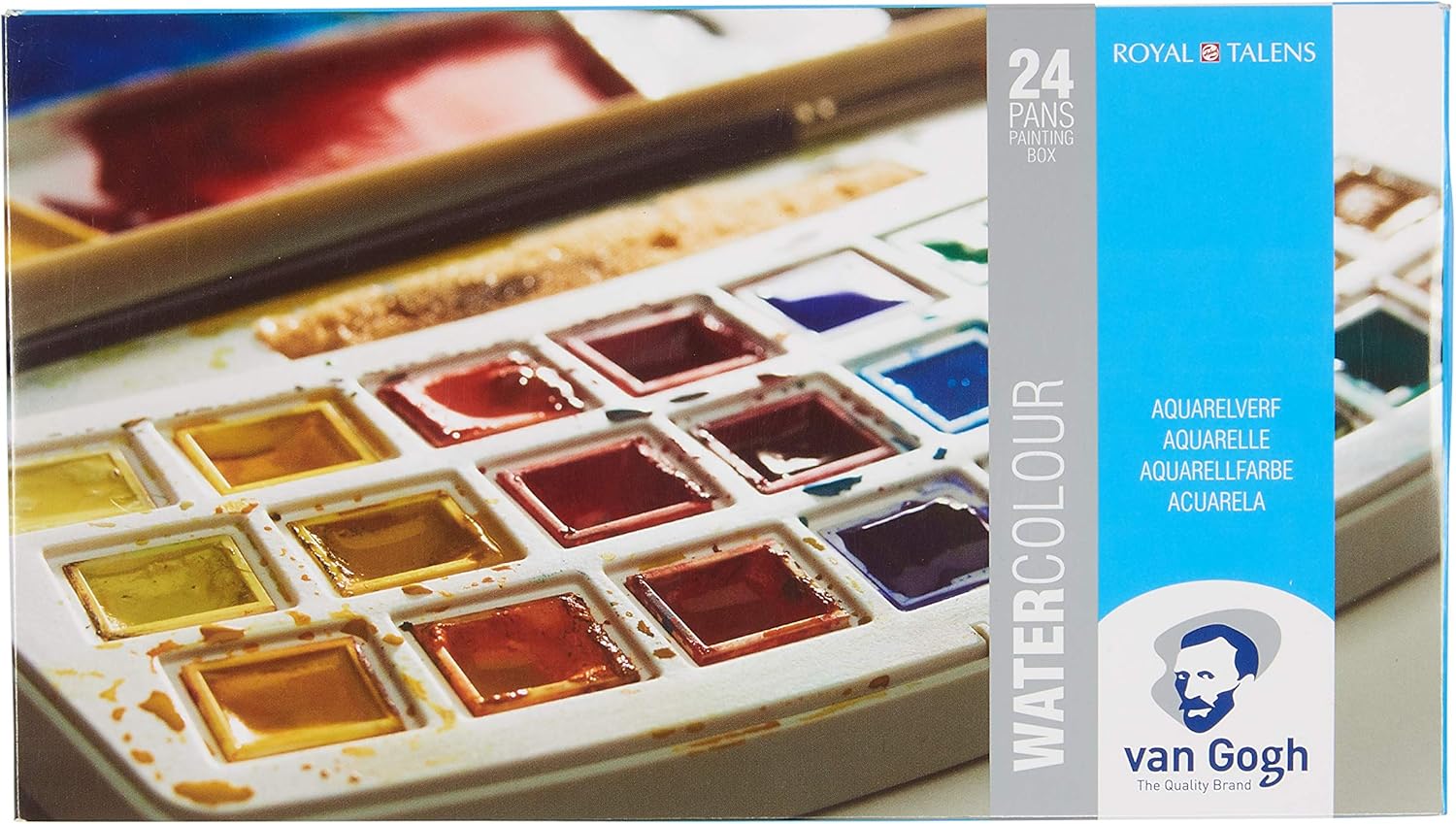 The Van Gogh Watercolor Set (24 Half Pans) is a compact and professional-grade painting kit perfect for both aspiring and experienced watercolor artists. This set includes 24 brilliant colors from the General Selection range, housed in a durable plastic pocketbox with built-in mixing wells.