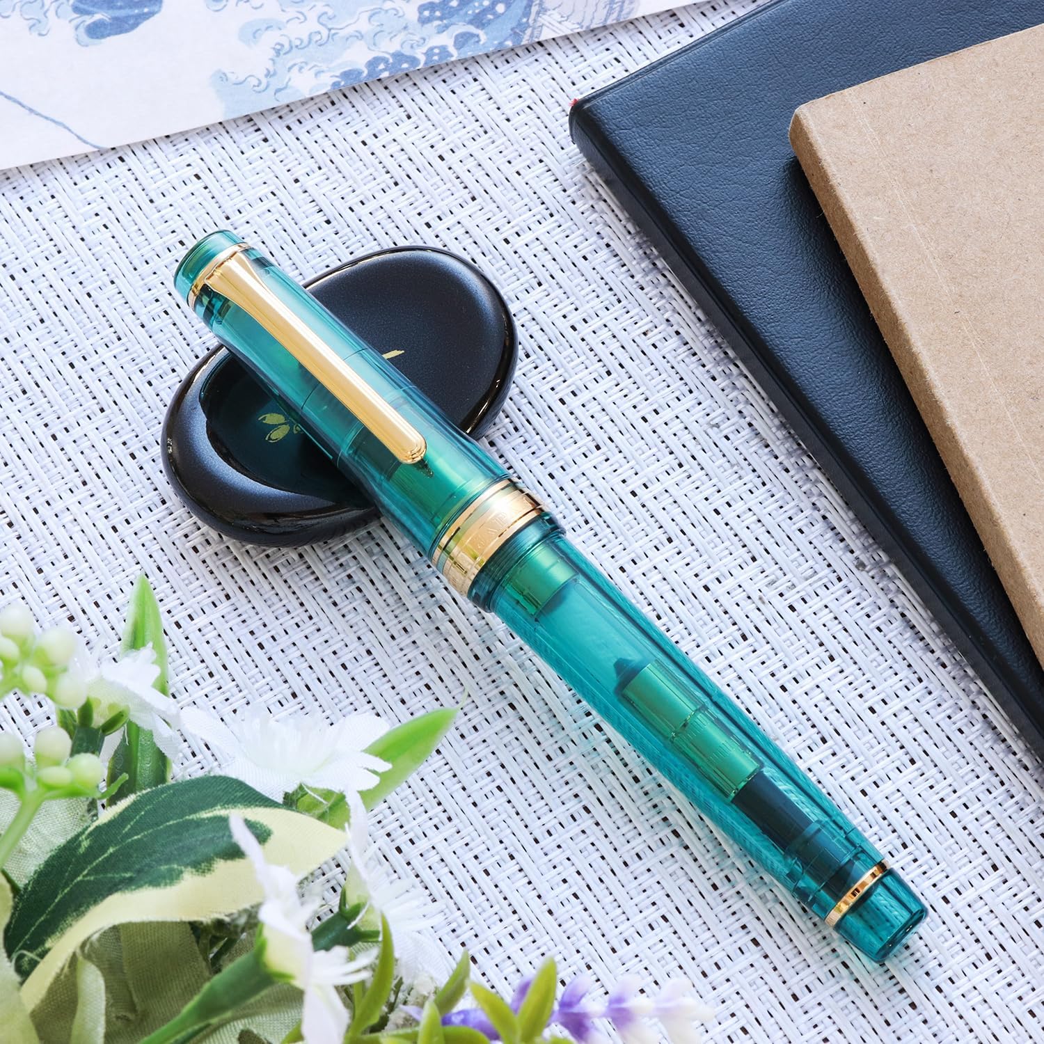WANCHER Limited Fountain Pen, SAILOR Original Professional Gear, Transparent, Aqua Blue, 21K Gold Fountain Pen [Special Product of WancherxSailor] (M, Medium Point)
