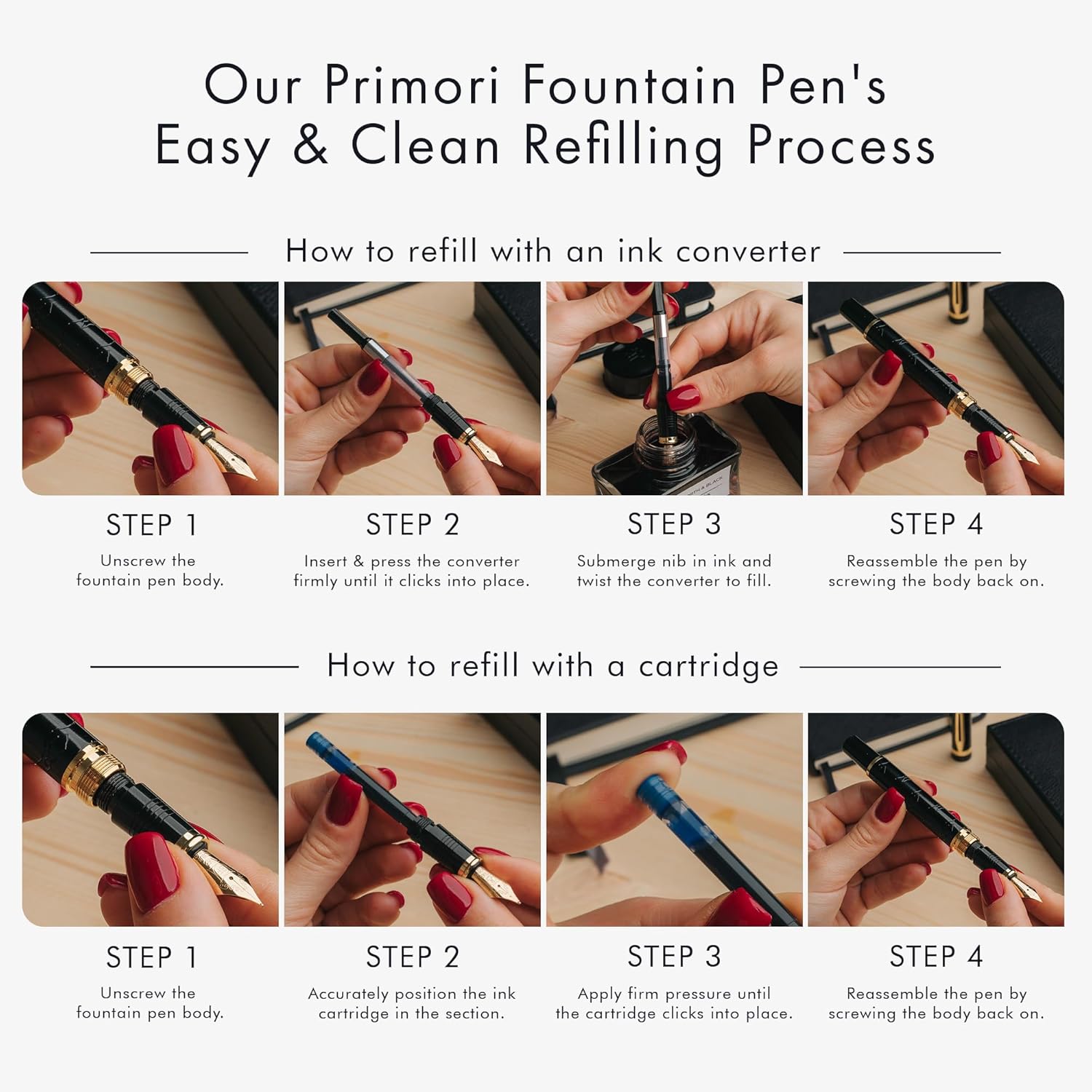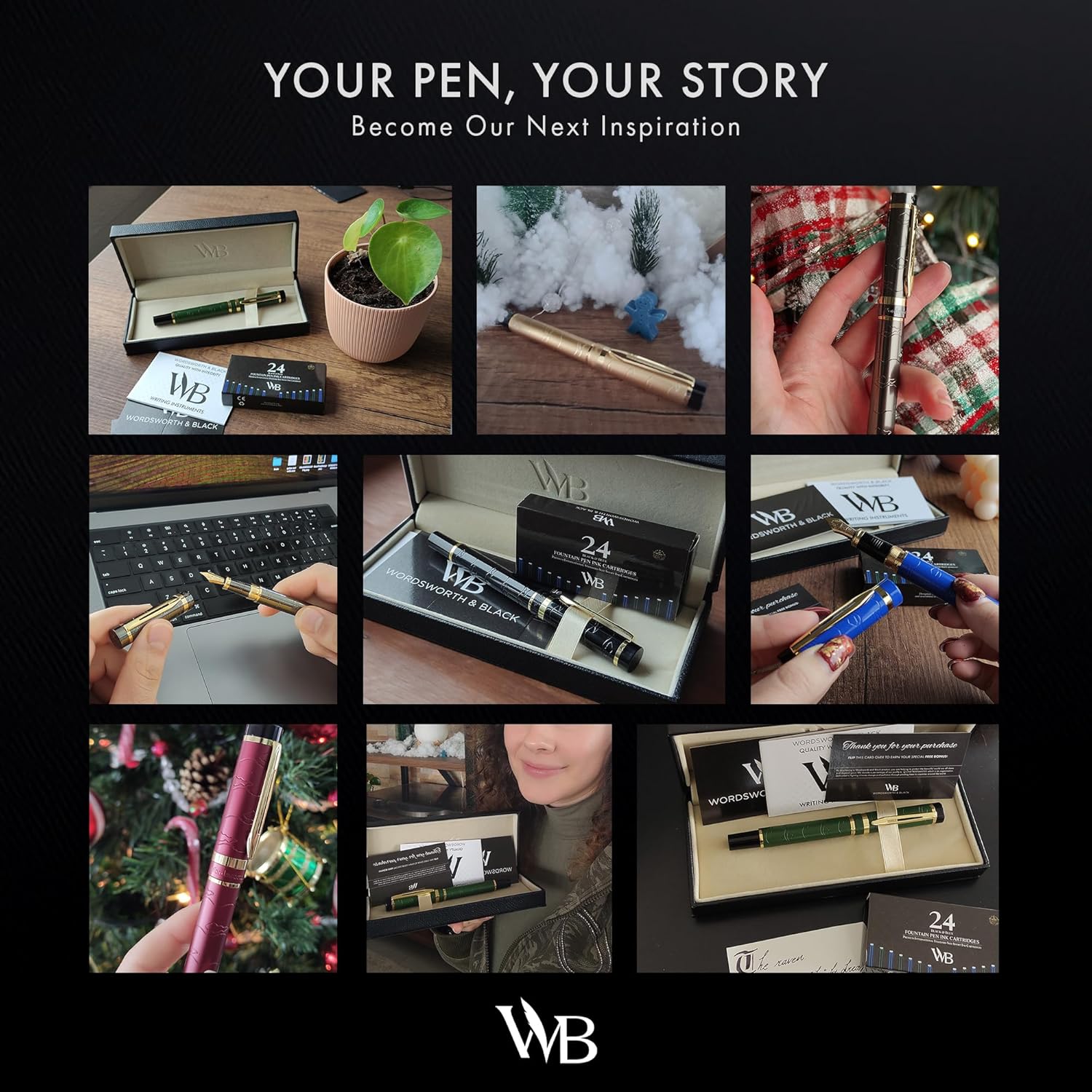 Wordsworth & Black Primori Fountain Pen Set [Black Gold]; Medium Nib, Gift Case, 24 Ink Cartridges, Refill Converter, Manual; Journaling, Calligraphy, Smooth Writing Pens; Left & Right Handed