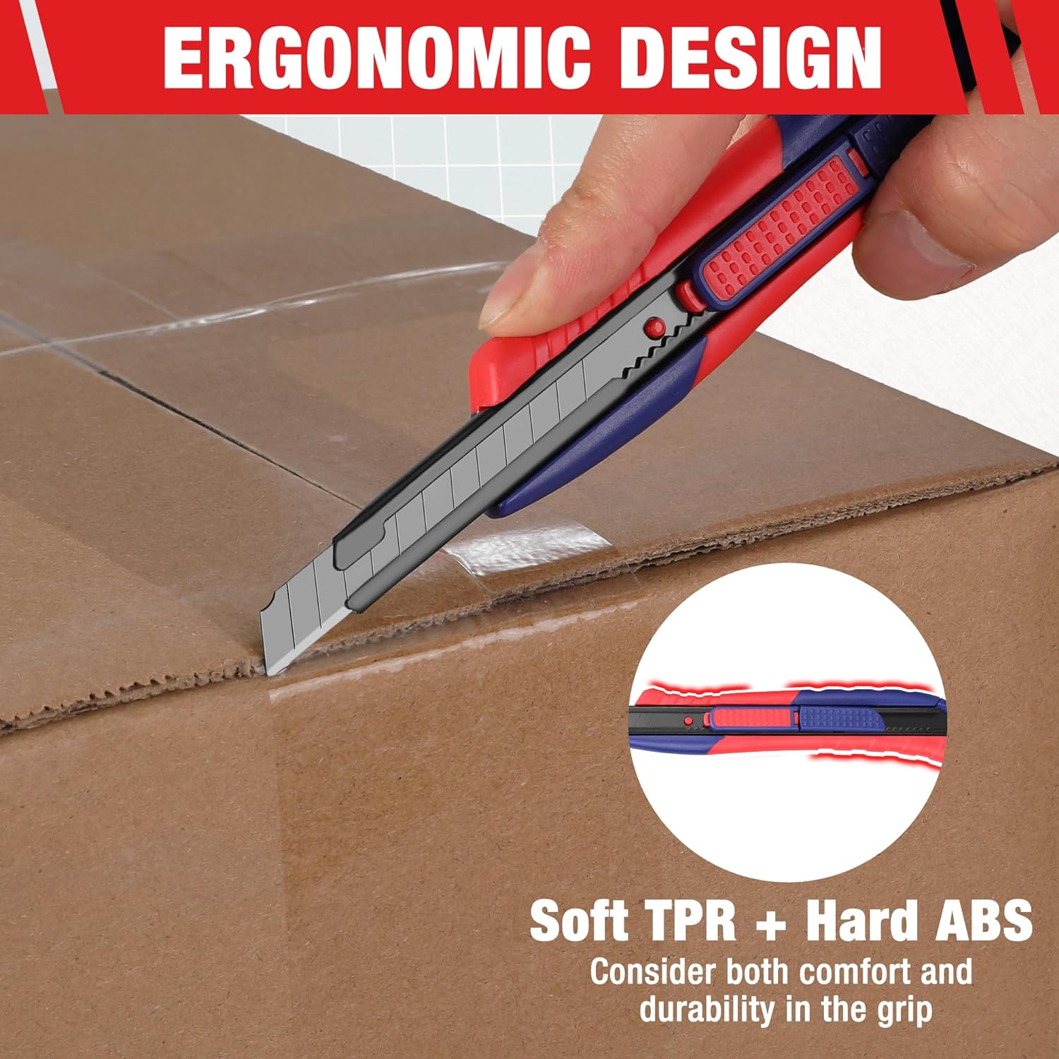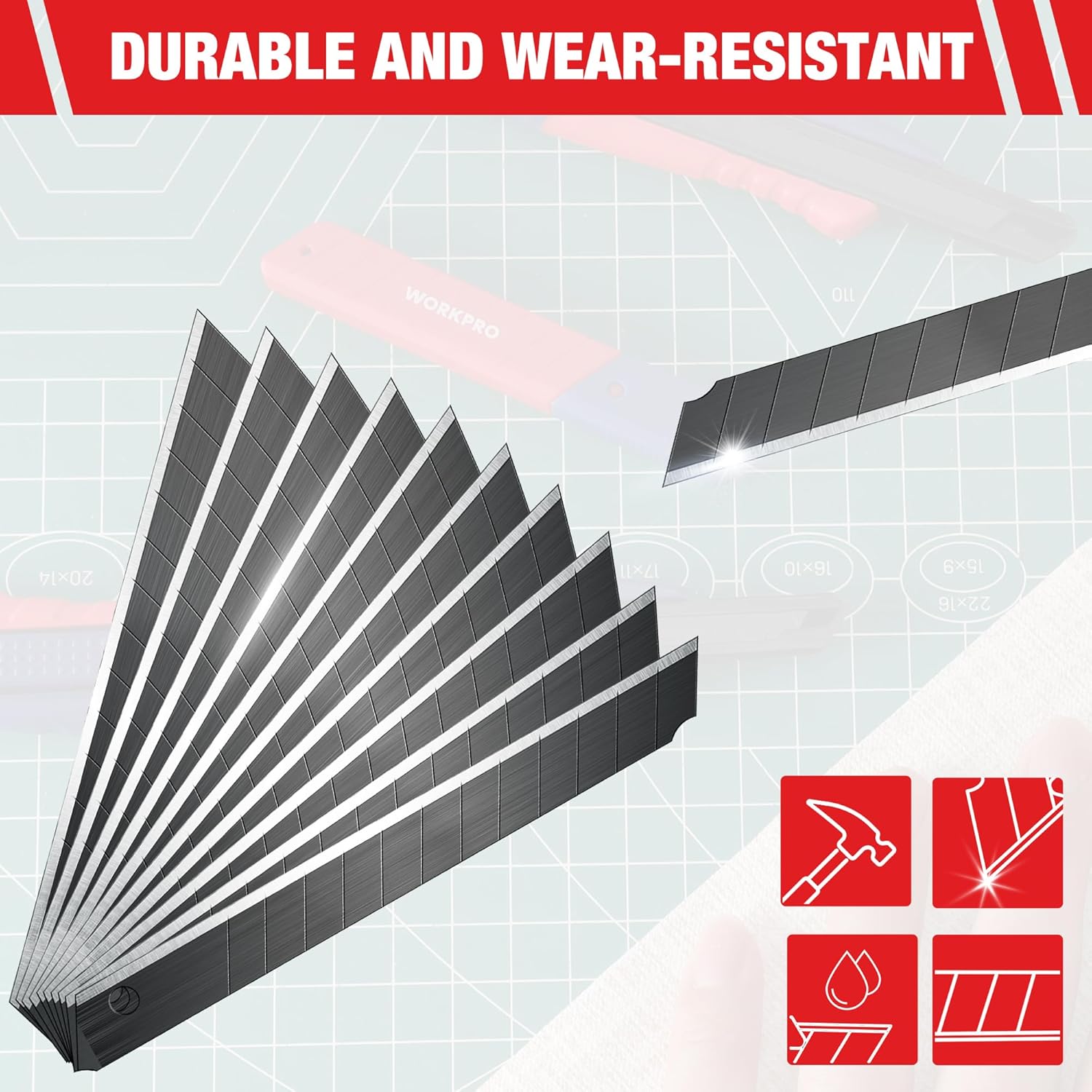 WORKPRO 2-In-1 Safety Utility Knife Retractable Snap-off blade, Metal Box Cutter Set, Razor Knife Exacto Craft Knives, with 10 Extra 9mm Blades, Pack of 3