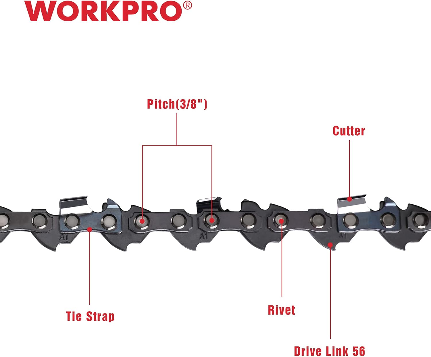 WORKPRO 2-Pack Chainsaw Chain for 16-Inch Bar, 3/8"Pitch, 56 Drive Links Wood Cutting Saw Chain for Chainsaw Parts fits Craftsman, Poulan, Echo, DeWalt