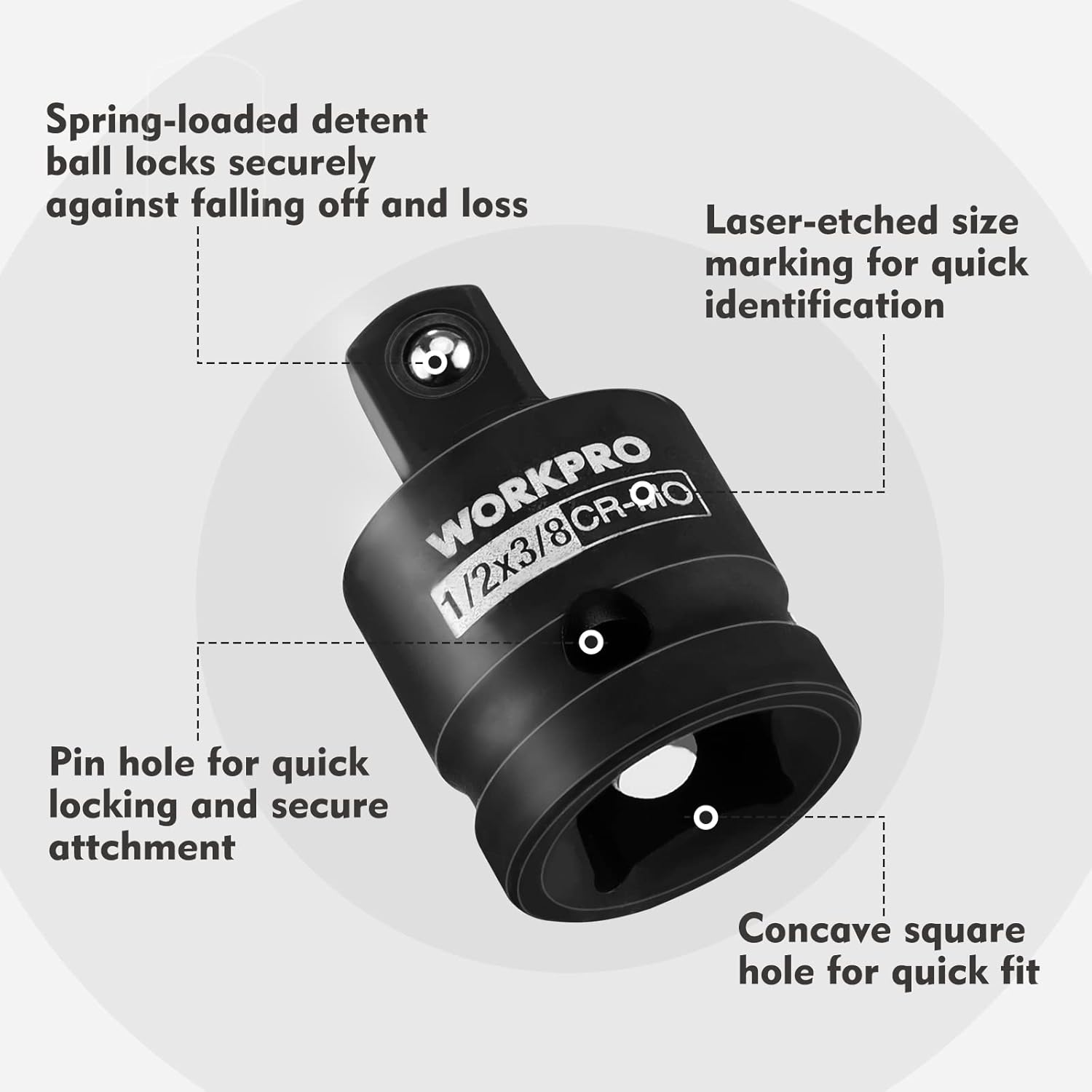 WORKPRO 4-Piece Impact Socket Adapter and Reducer Set, 1/4", 3/8", 1/2" Drive Socket Adapter Set, Impact Driver and Wrench Conversion Kit, Socket Reducer, Premium CR-MO Steel Made