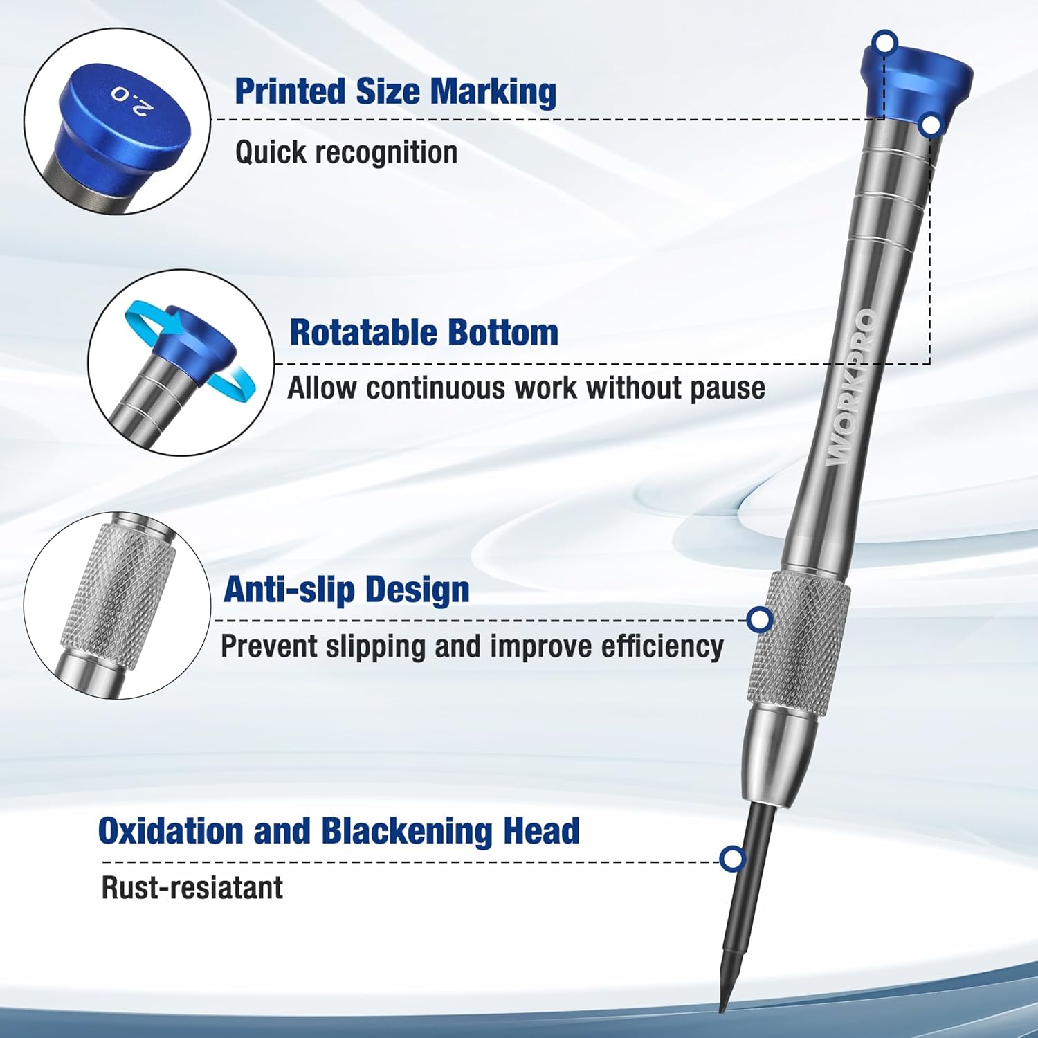 WORKPRO 6-Piece Magnetic Screwdriver Set, S2 Alloy Steel, 3 Phillips and 3 Slotted Tips Small Screwdriver Repair Tool Kit, Good for Phone, Computer, Watch, Eyeglass, Electronic