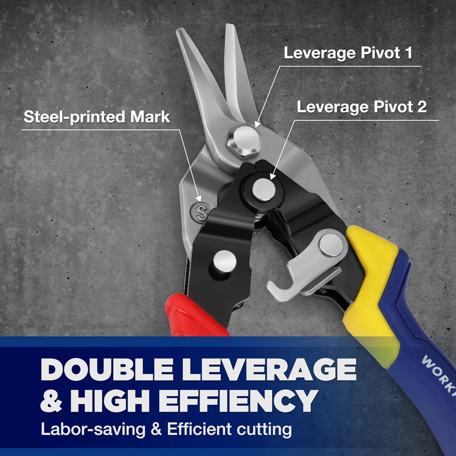 WORKPRO 8 Inch Aviation Snips, Straight Cut, Heavy Duty Metal Cutter with Safety Latch and Non-slip Handle, Cr-V Steel Sharp Teeth, Aviation Snips for Cutting Metal Sheet
