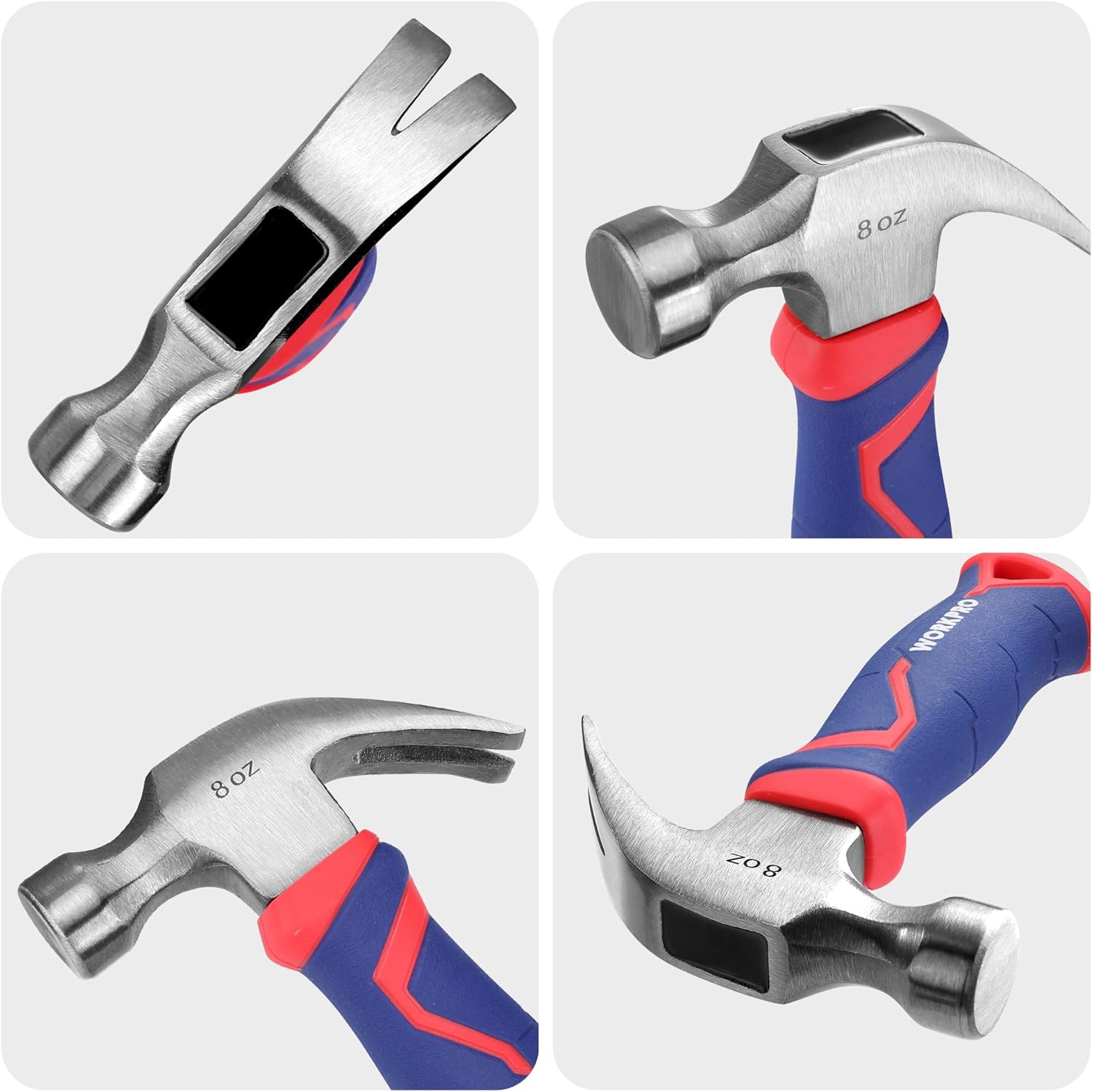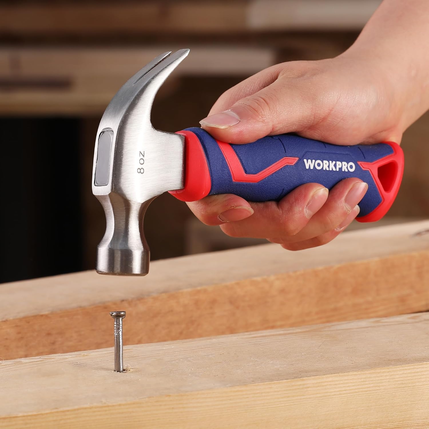 WORKPRO 8 oz Claw Hammer with Fiberglass Handle, All Purpose Hammer with Forged Hardened Steel Head, Smooth Face & Shock Reduction Grip