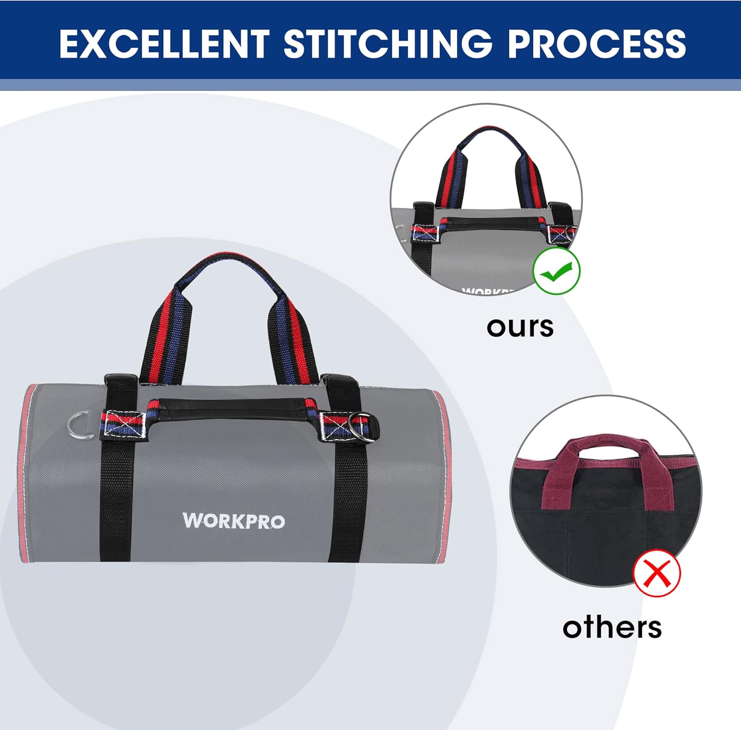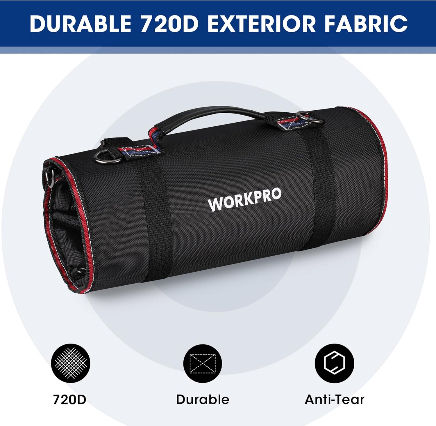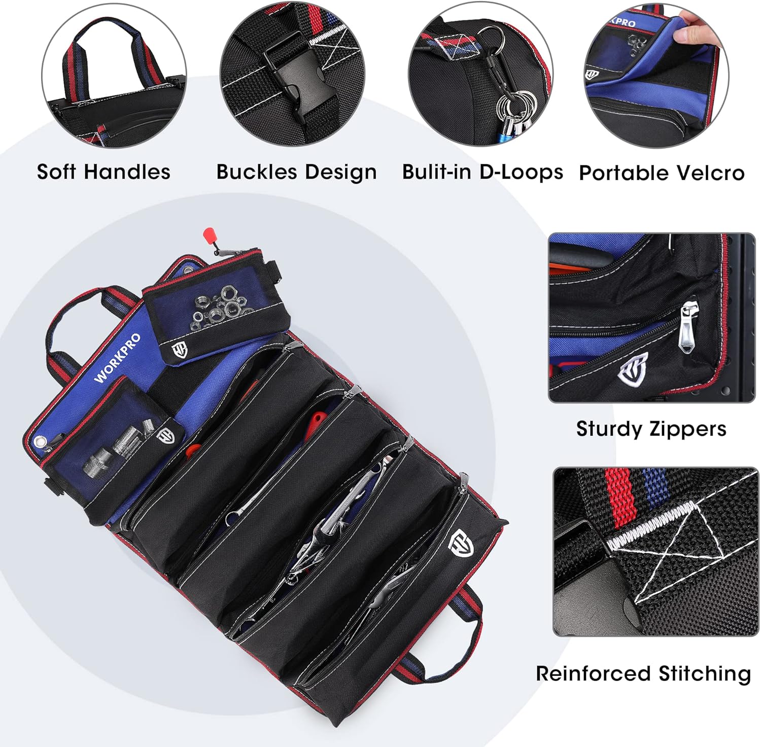 WORKPRO Roll Up Tool Bag With Detachable Pouches, Heavy Duty Organizer With 6 Pockets for Mechanic, Electrician, Plumber and Carpenter