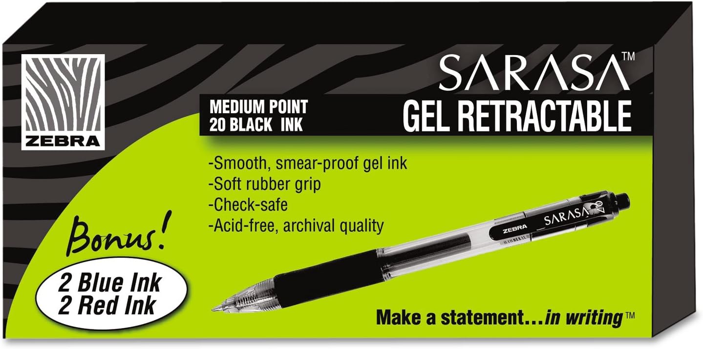 ZEBRA 14680 Sarasa Retractable Gel Pen, Black Ink, Medium, 24/Pack