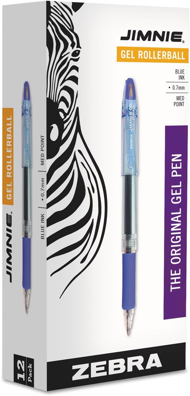 ZEBRA 44120 Jimnie Roller Ball Stick Gel Pen, Blue Ink, Medium, Dozen