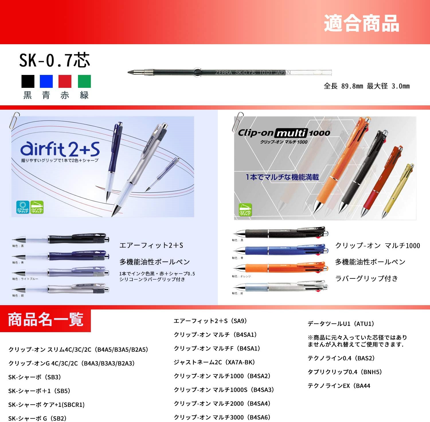 ZEBRA B-BR-6A-SK-BL Clip-on Oil-Based Ballpoint Pen Refill, SK-0.7 Core, Blue, 10 Pieces