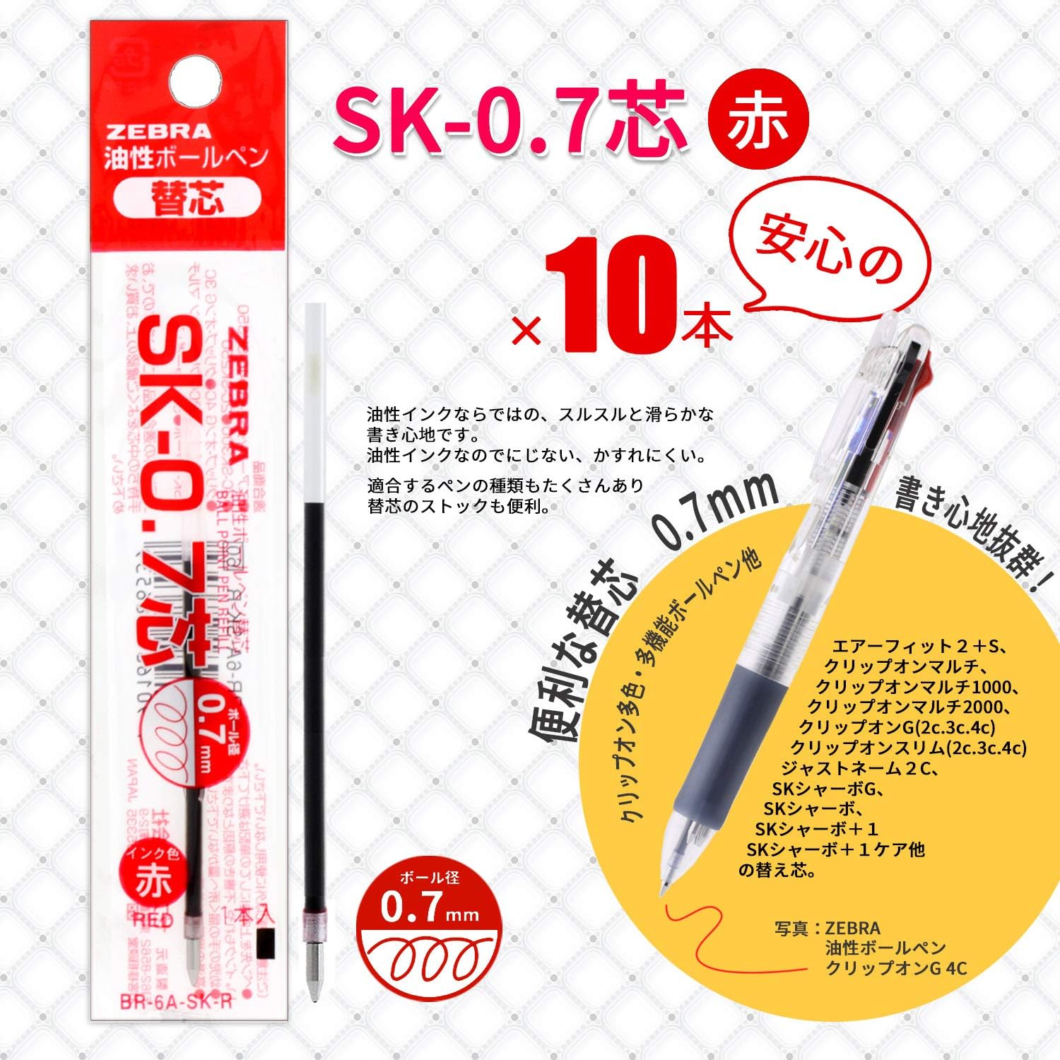 ZEBRA B-BR-6A-SK-R Clip-on Oil-Based Ballpoint Pen Refill, SK-0.7 Core, Red, 10 Pieces