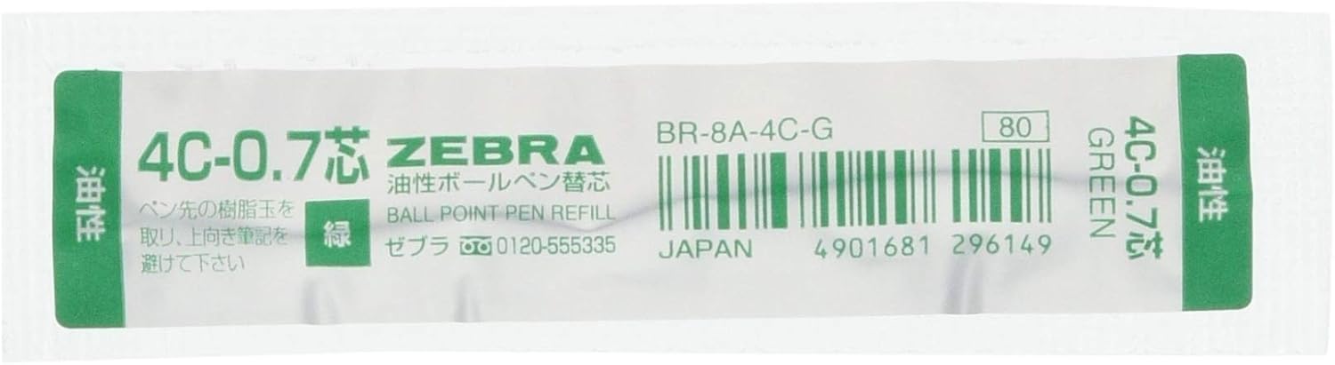 ZEBRA B-BR-8A-4C-G Rollerball Pen Refill, 4C-0.7 Lead, Green, 10 Pens