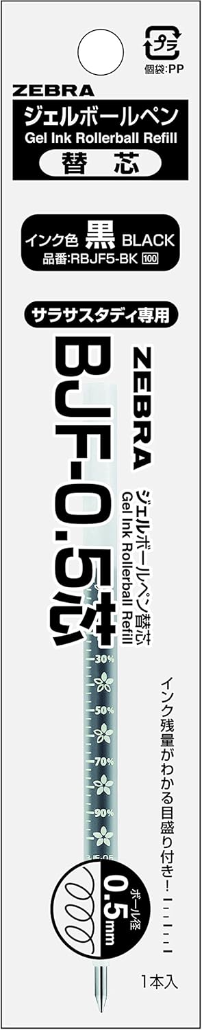ZEBRA B-RBJF5-BK Gel Ballpoint Pen Refill, Sarasa Study BJF-0.5 Lead, Black, 10 Count