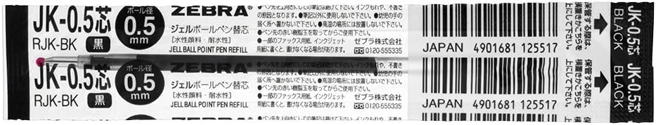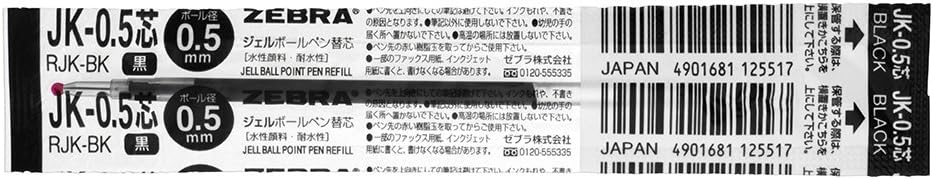 ZEBRA B-RJK-BK Gel Ballpoint Pen Refill, Multi-Color, Multi-Functional, JK-0.5 Lead, Black, 10 Pens