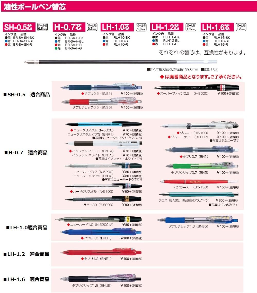 ZEBRA B-RLH10-BL Oil-Based Ballpoint Pen Refill, Tapri LH-1.0 Lead, Blue, 10 Pens