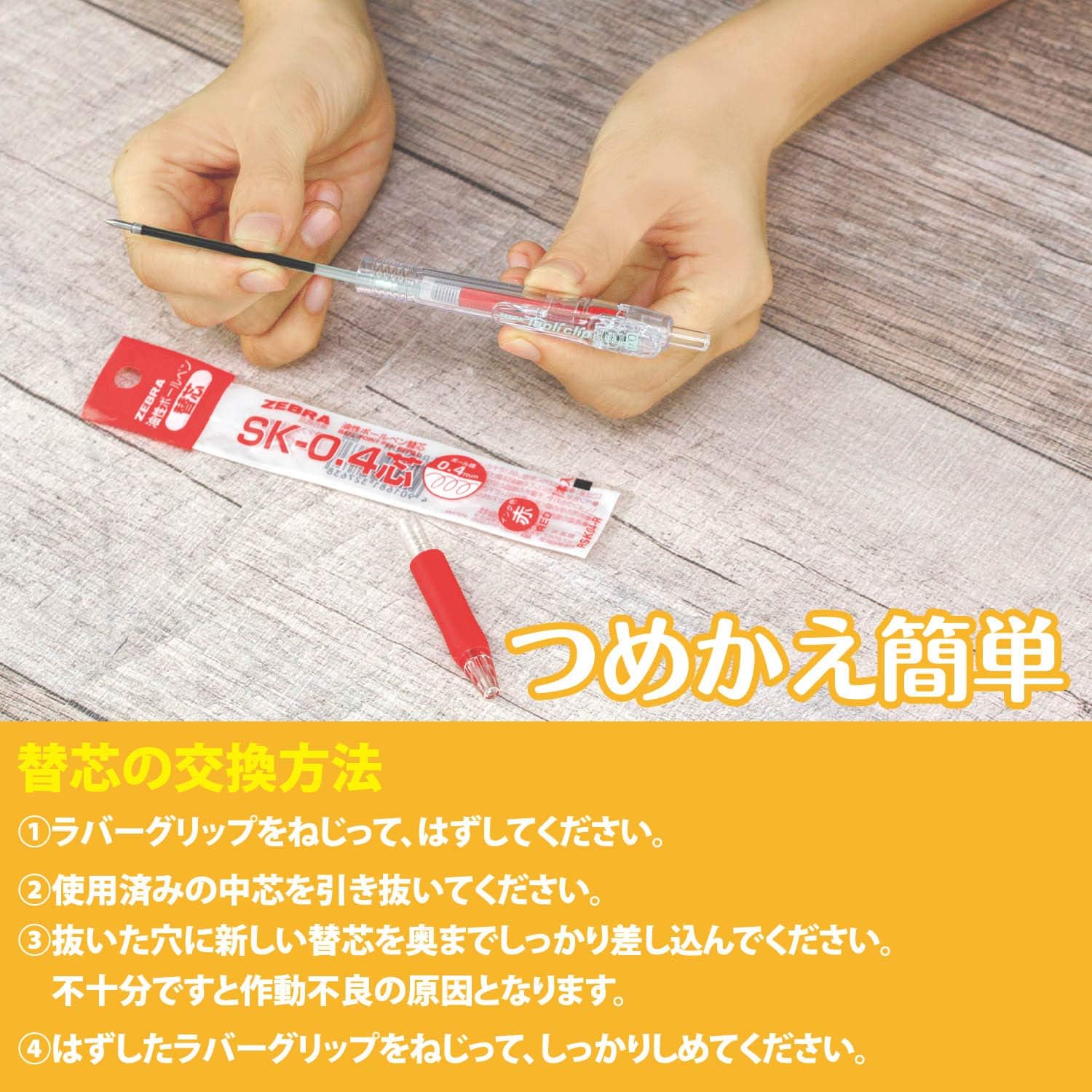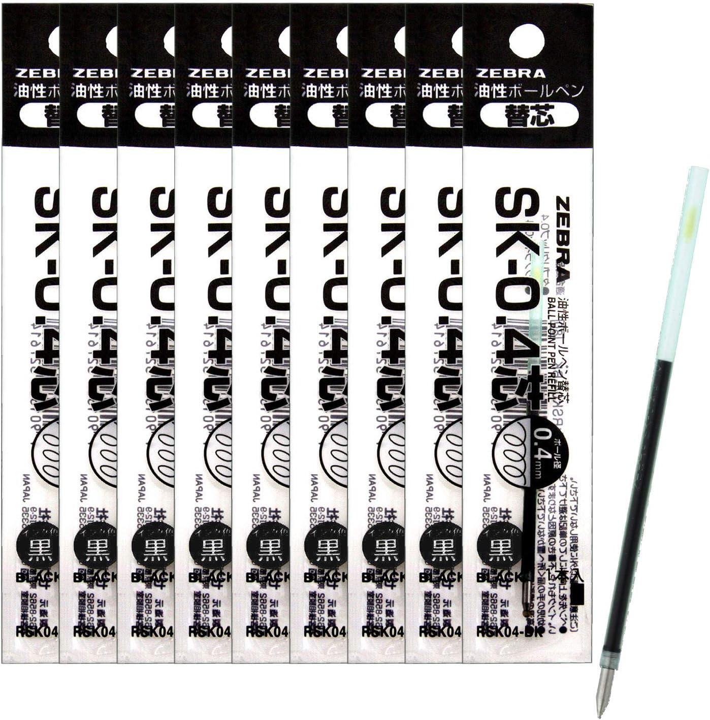 ZEBRA B-RSK04-BK Oil-Based Ballpoint Pen Refill, Tapri Clip, SK-0.4 Lead, Black, 10 Pens