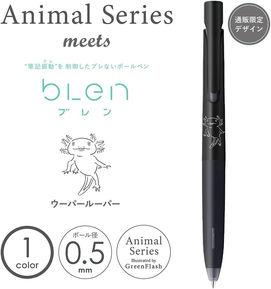 ZEBRA BAS88-AS-3BK Oil-Based Ballpoint Pen, Blen, 0.02 inches (0.5 mm), Animal Pattern, Black Ink, Set of 3