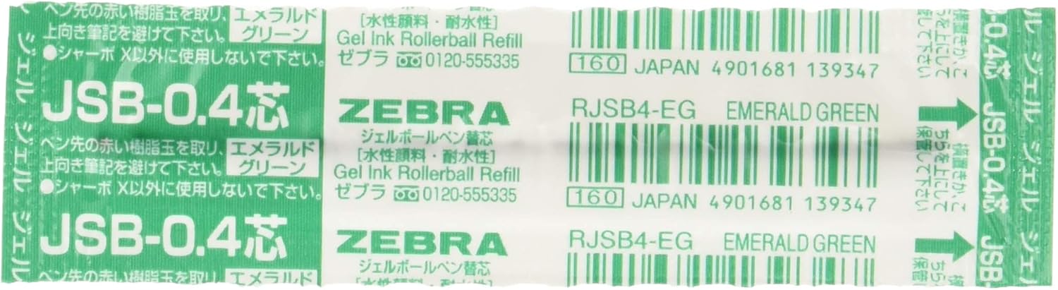 ZEBRA BRJSB4EG Gel Ballpoint Pen Refill, Sherbo JSB-0.4 Lead, Emerald Green, 10 Pens