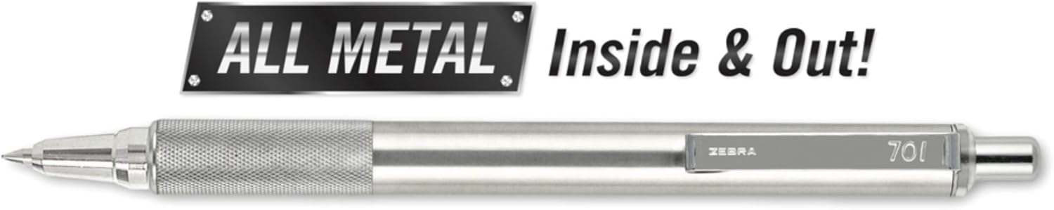 ZEBRA F-701 Metal Pen - Ballpoint Fine Point Stainless Steel - 0.8mm - Black Ink - Retractable ZEBRAs with 2 Black Ink Refills