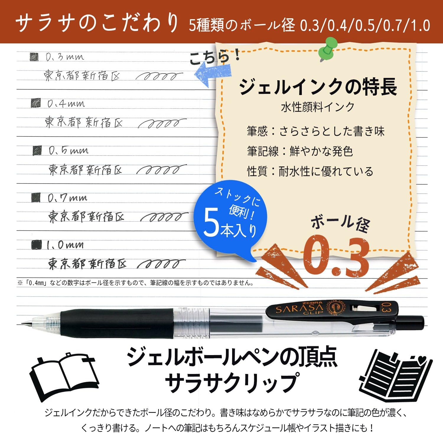 ZEBRA Gel Ballpoint Pen Sarasa Clip 0.3 Black 5 Pack P-JJH15-BK5