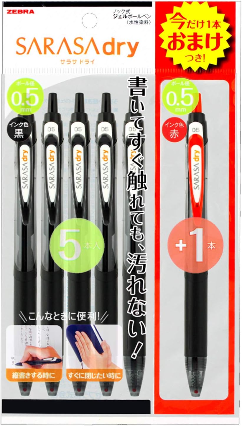 ZEBRA Gel Ink Ballpoint Pen SARASA Dry 0.5 [Black] x 5 pieces (With bonus) (Japan Import)