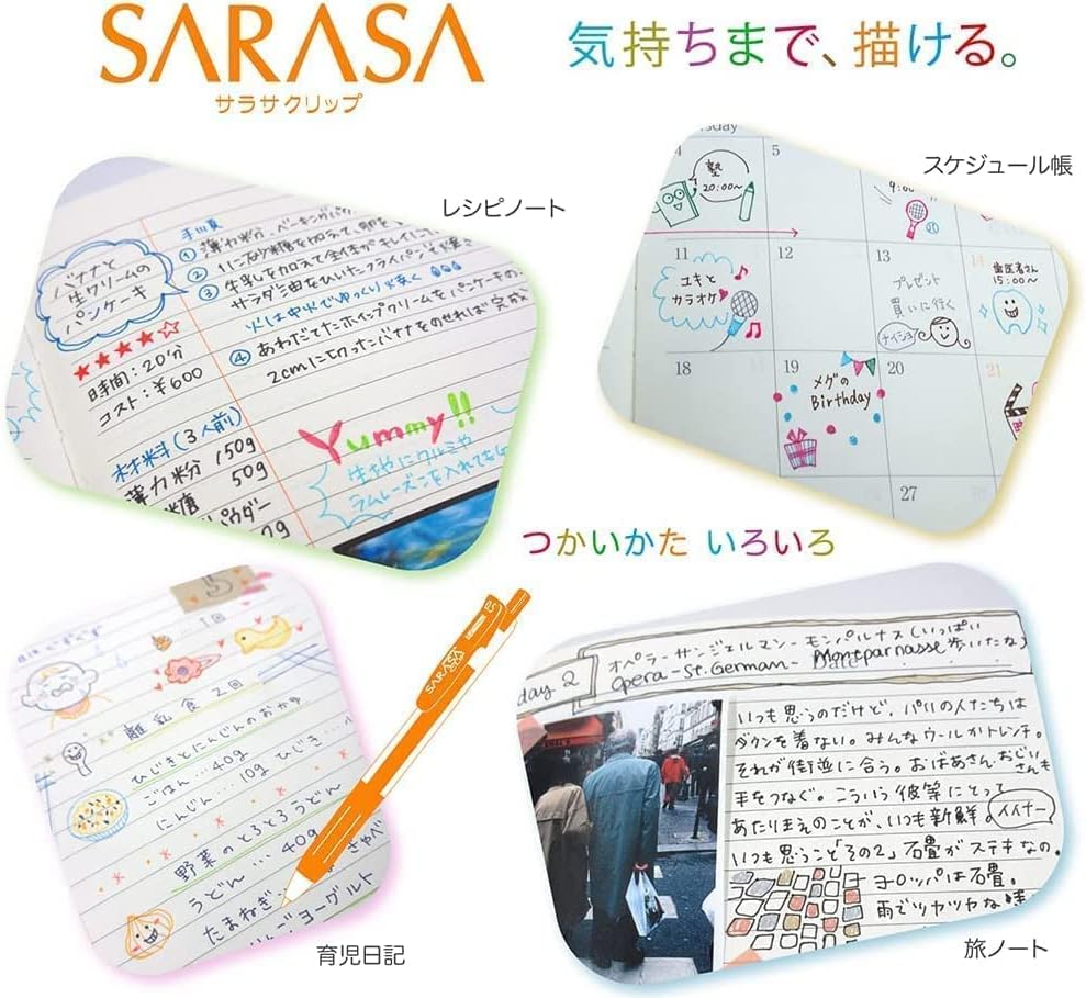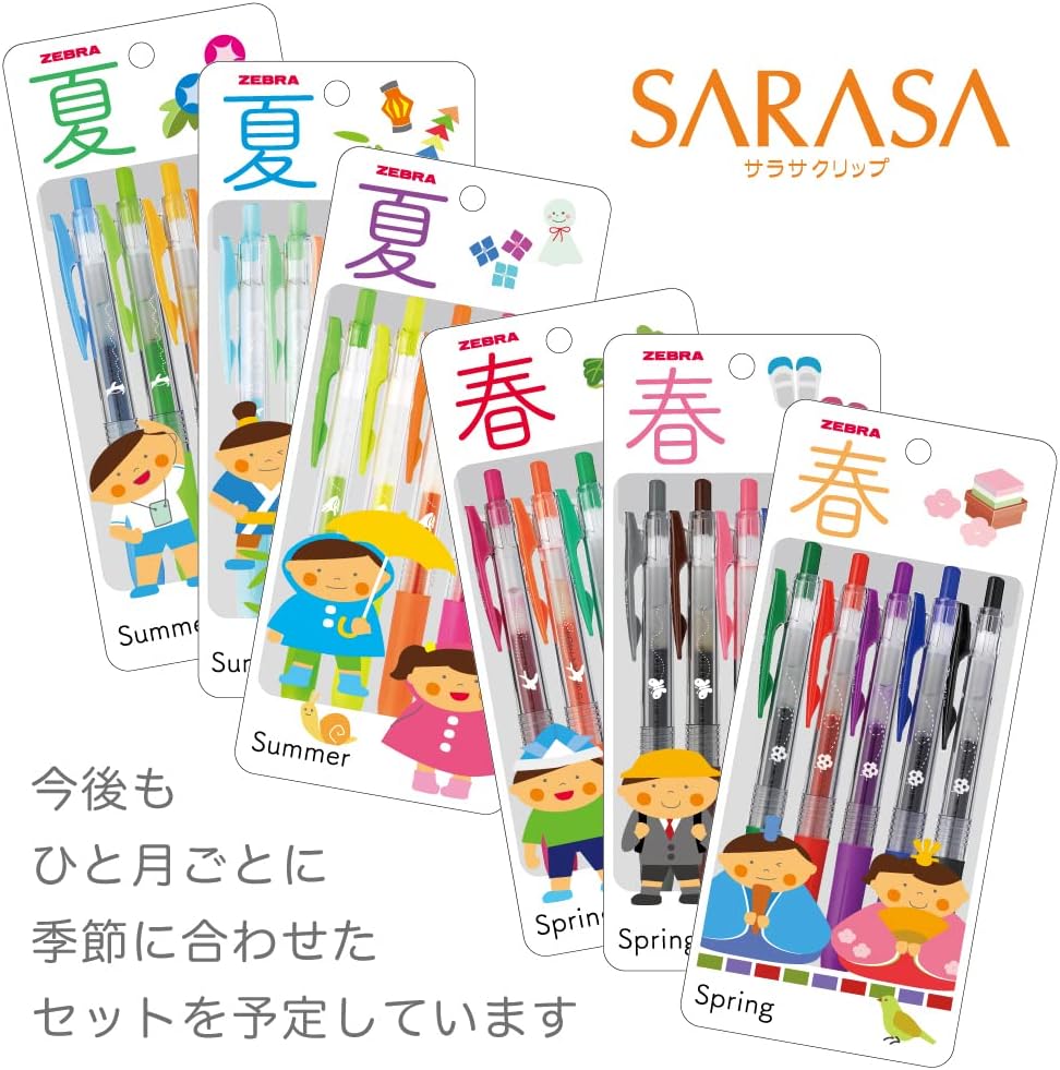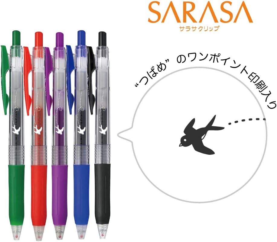 ZEBRA JJ15-5C-5A Sarasa Clip Gel Ballpoint Pen, 0.02 inches (0.5 mm), Brim Pattern, Includes Zipper Case, Set of 5 Colors