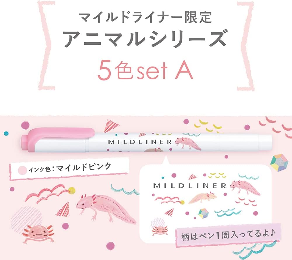 ZEBRA Mildliner WKT7-AS-5C-A Highlighter, Set of 5 Colors, Animal