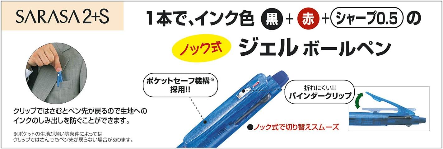 ZEBRA Multi Function Sarasa 2 + S Black/Red Ink Ballpoint Pen, 0.5mm Mechanical Pencil, White Body