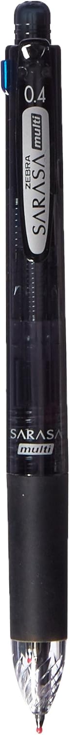ZEBRA Multi Function Sarasa 4 Plus S Black/Red/Blue/Green Ink 0.4mm Ballpoint Pen, 0.5mm Mechanical Pencil, Black Body (J4SAS11-BK)