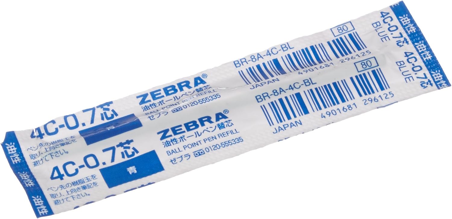 ZEBRA Oil-Based Ballpoint Pen Refill for Sharbo X, Minna, SL-F1, Fortia500, Workdash Blue Ink, 0.7mm Point (BR-8A-4C-BL)