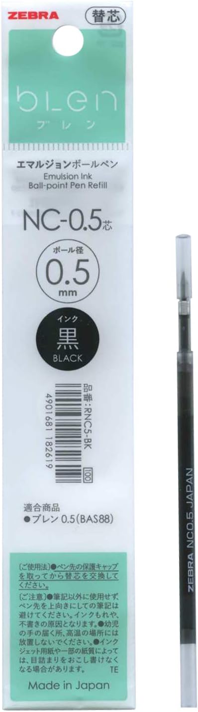 ZEBRA Refill for Emulsion Ballpoint Pen blen NC [0.5 / Black] (Japan Import)