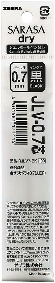ZEBRA Refill for Gel Ink Ballpoint Pen SARASA Dry (0.7mm) [Black] x 10 piece (Japan Import)