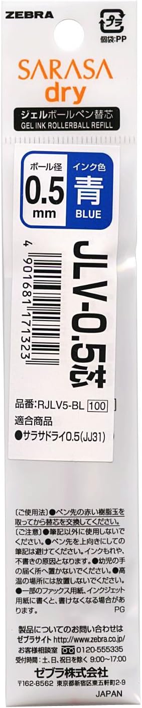 ZEBRA Refill for SARASA Dry (Gel Ink Ballpoint Pen) JLV-0.5 [Blue] (Japan Import)