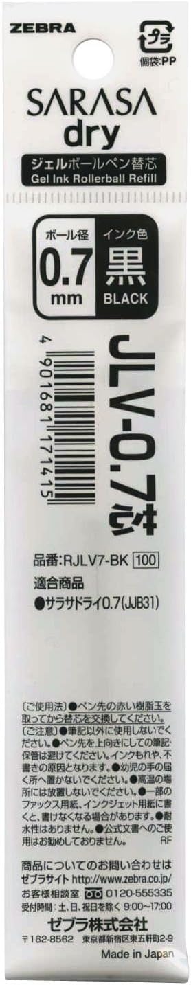 ZEBRA Refill for SARASA Dry (Gel Ink Ballpoint Pen) JLV-0.7 [Black] (Japan Import)