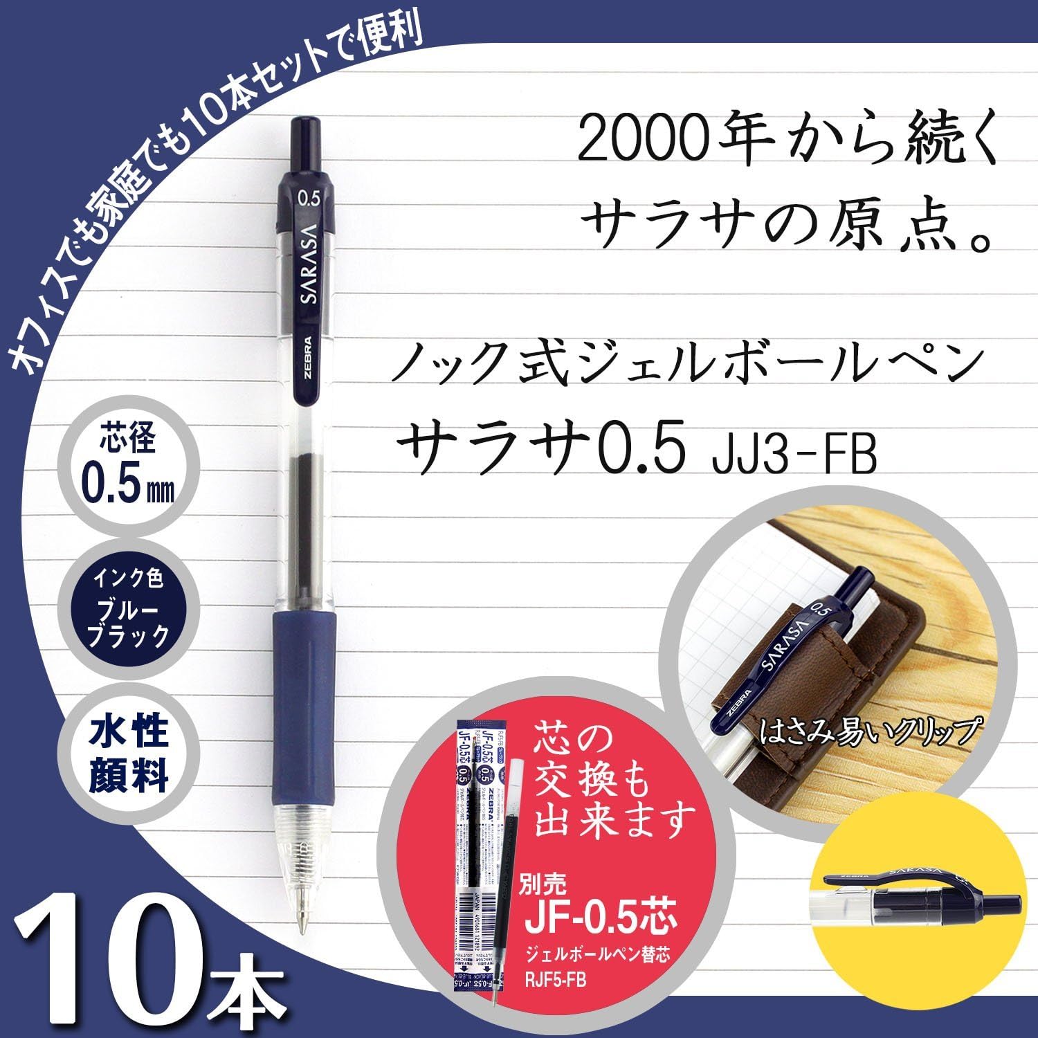 ZEBRA Sarasa B-JJ3-FB Gel Ballpoint Pen, 0.5, Blue Black, 10 Pieces