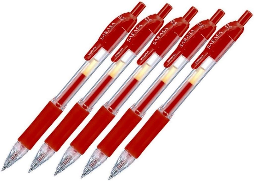 ZEBRA Sarasa P-JJ3-R5 Gel Ballpoint Pen, 0.5, Red, 5 Pieces