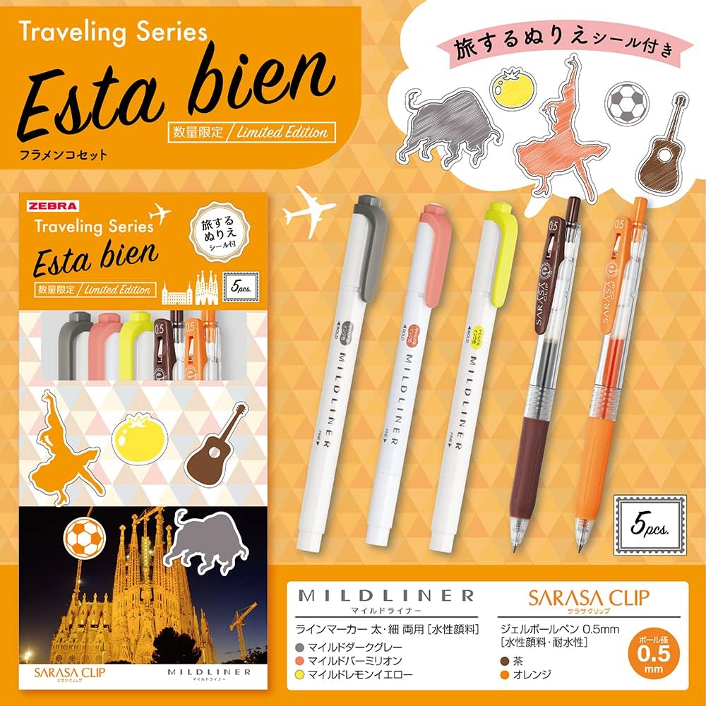 ZEBRA SE-TR-5CS Sarasa Clip Mild Liner Set, Traveling Series, Flamenco, Mixed Set of 5