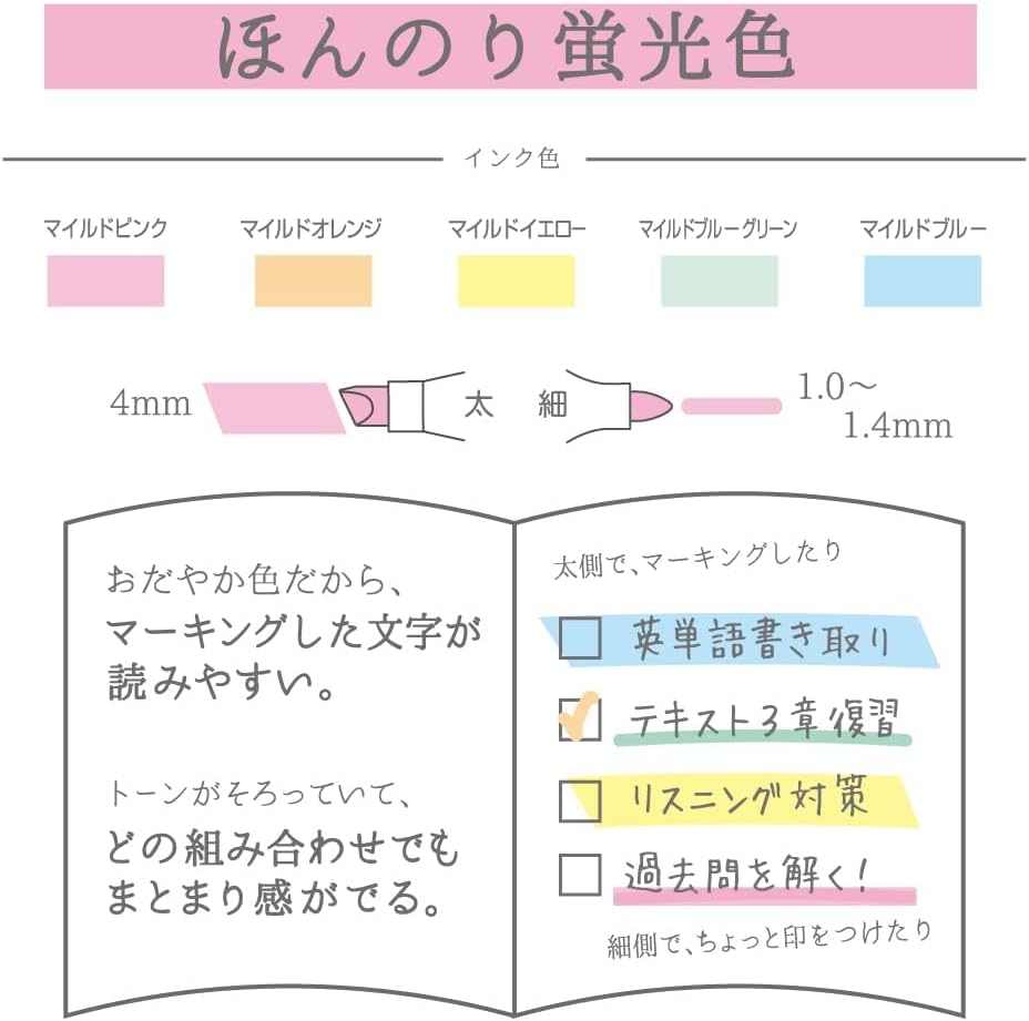 ZEBRA WKT7-5C-N Highlighter, Mildliner, Faint Fluorescent Colors, 5 Colors
