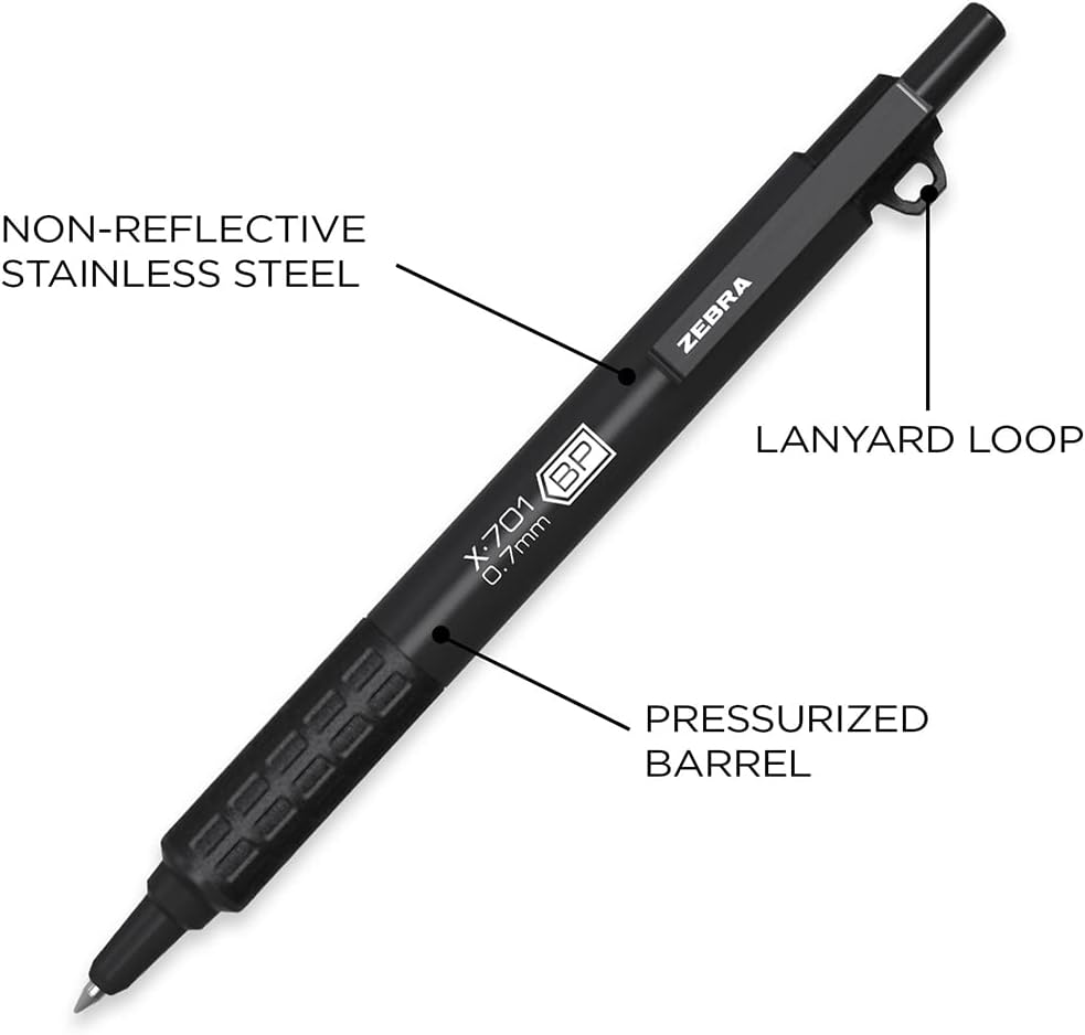 ZEBRA X-701 Tactical Ballpoint Pen And Refills, Fine Point, 0.7mm, Black Ink, 1 Pen And 2 Refills (Pack of 1)